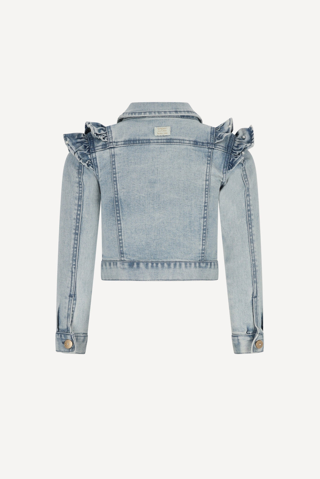 Le Chic ALLY spijkerjas in blauw is een perfecte aanvulling op de kledingcollectie van jouw dochter. Deze spijkerjas met luxe details zoals ruches en sierparels geeft elke outfit net dat beetje extra. Gemaakt van comfortabele materialen, ideaal voor een vrolijke dag. Combineer het met andere items uit de collectie voor een complete look.• Stijlvolle uitstraling door de ruches met parels.