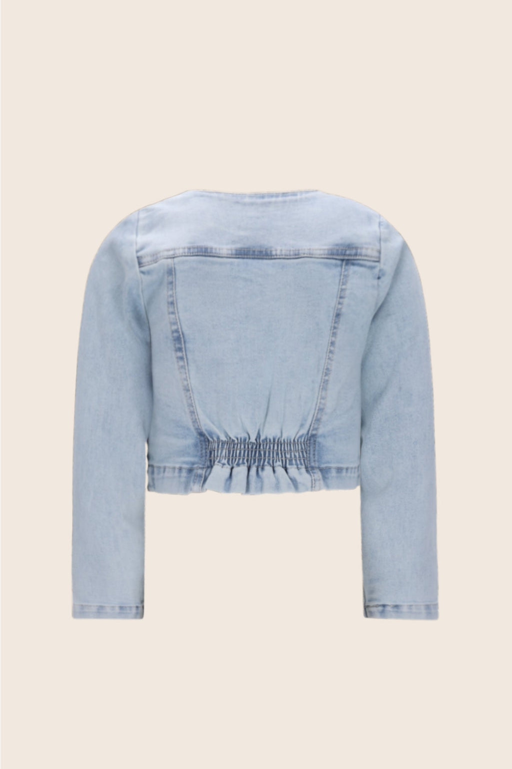 Amina Jacket is een trendy denim jasje in lichtblauw, perfect voor stoere meiden die stijl waarderen. Het jasje heeft een comfortabele pasvorm met stretch en cutee drukknopen die het een unieke look geven. Ideaal voor casual dagen of feestelijke gelegenheden en eenvoudig te combineren met tops of jurken. Met de cropped fit is het jasje perfect voor layering met andere trendy items. Dit is de perfecte toevoeging aan je garderobe!• Cropped pasvorm voor een trendy look.