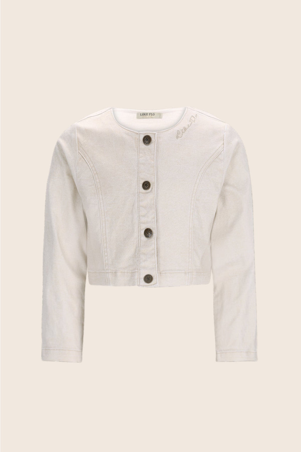 Dit Amina Jacket in zacht goud is een must-have voor elke trendy meid. Het jasje heeft een cropped pasvorm en is gemaakt van 97% organisch katoen en 3% elastaan voor optimaal comfort. De subtiele glitter maakt het jasje uniek en perfect voor een feestelijke look. Het valt, door de veelzijdigheid, prima te combineren met de bijpassende broek Fyke of over het jurkje Moscou.• Perfect voor casual en feestelijke momenten!