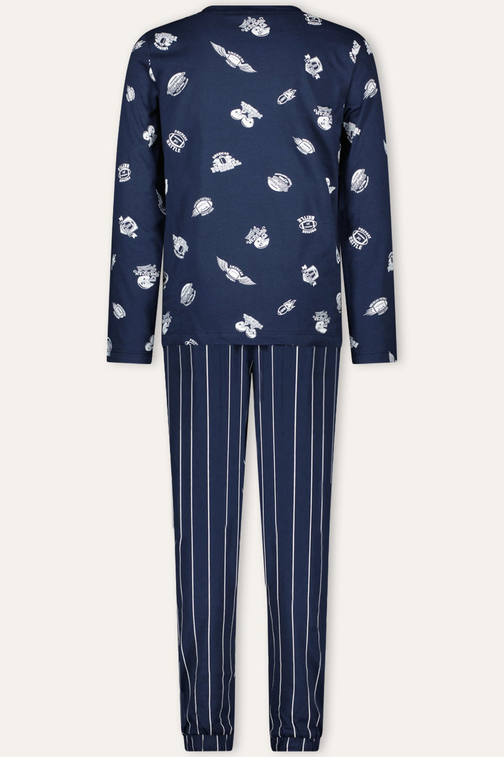 Sleep well! In deze super leuke Senn pyjama zie je er zelfs snachts goed uit. De leuke combinatie van allover print op de top, en streep print op de bottom maken de pyjama helemaal! Het zachte stofje en elastieke tailleband maken de pyjama extra comfy. Perfect voor een goede nachtrust dus!