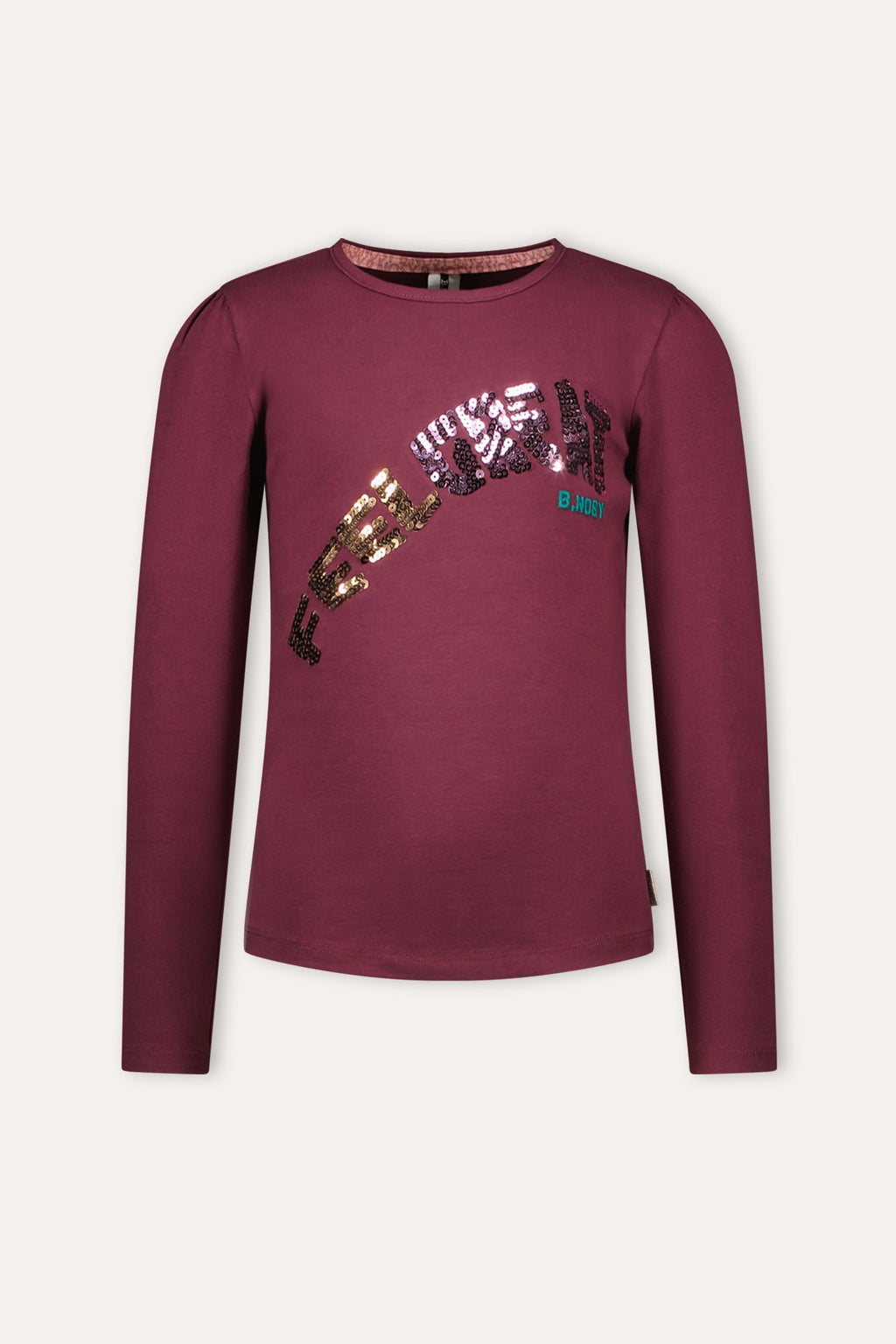 Feel great! B.Nosy top Tara is een fijne basic longsleeve en verkrijgbaar in twee kleuren. De top heeft een gaaf artwork van pailleten en is gemaakt van biologisch katoen. Deze top is voor elke dag perfect, combineer hem met de Ruby rok voor een stoere girly outfit!