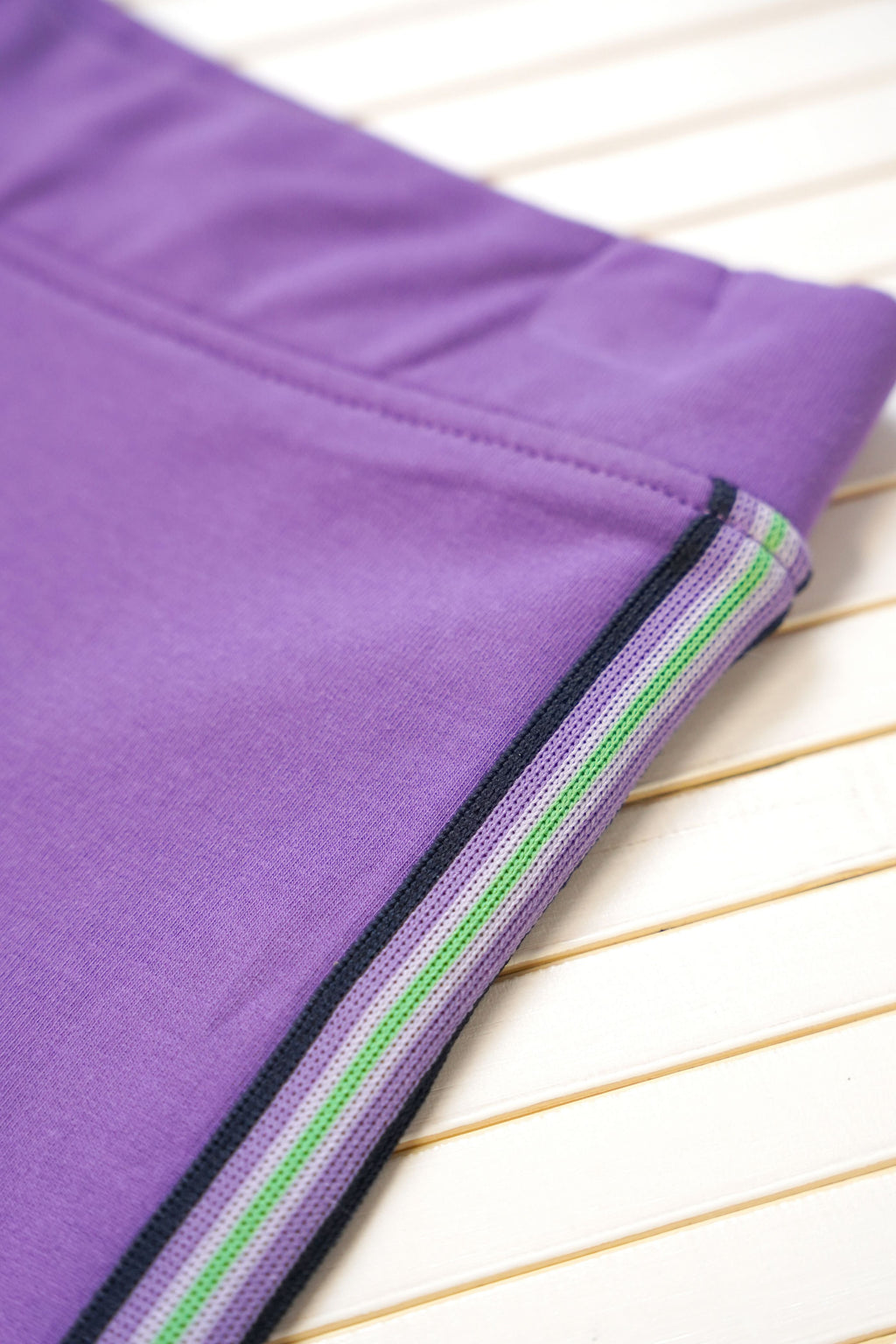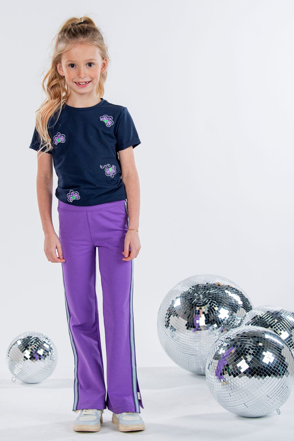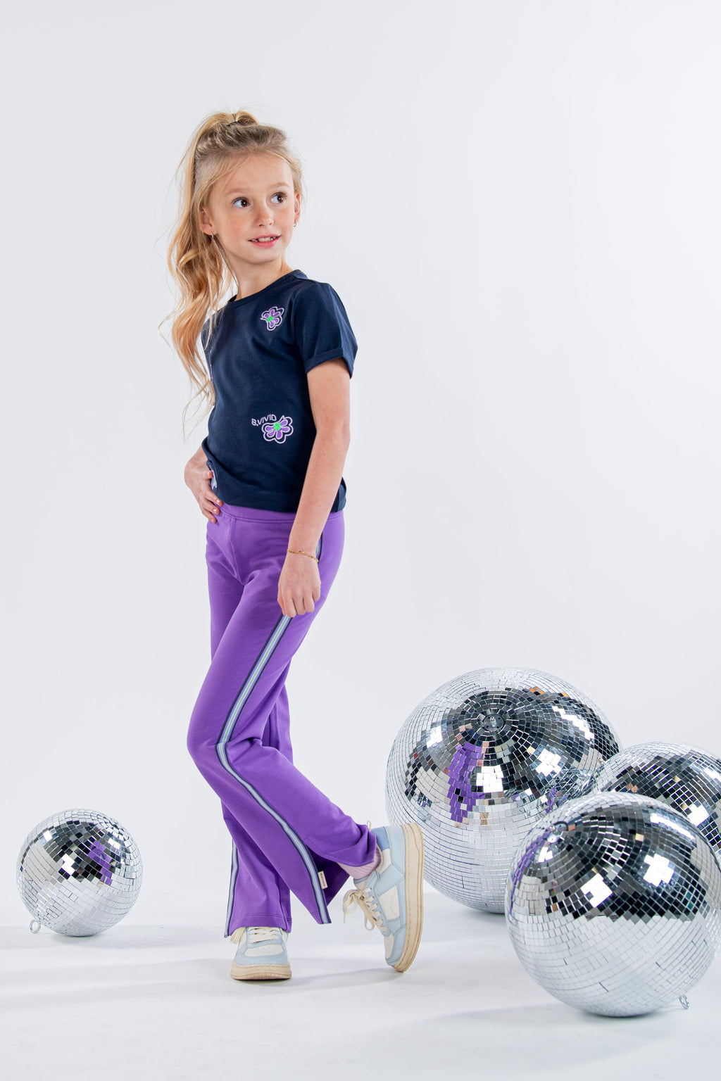 Hoe tof is deze broek! De prachtige paarse kleur en fijne sweat stof maken deze broek een echte favoriet. De broek heeft een contrasterende streep aan de zijkant, valt recht en heeft een elastische tailleband.