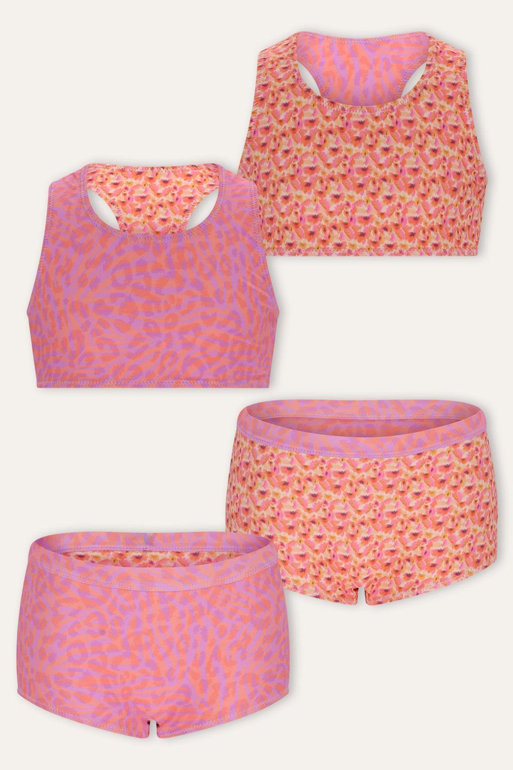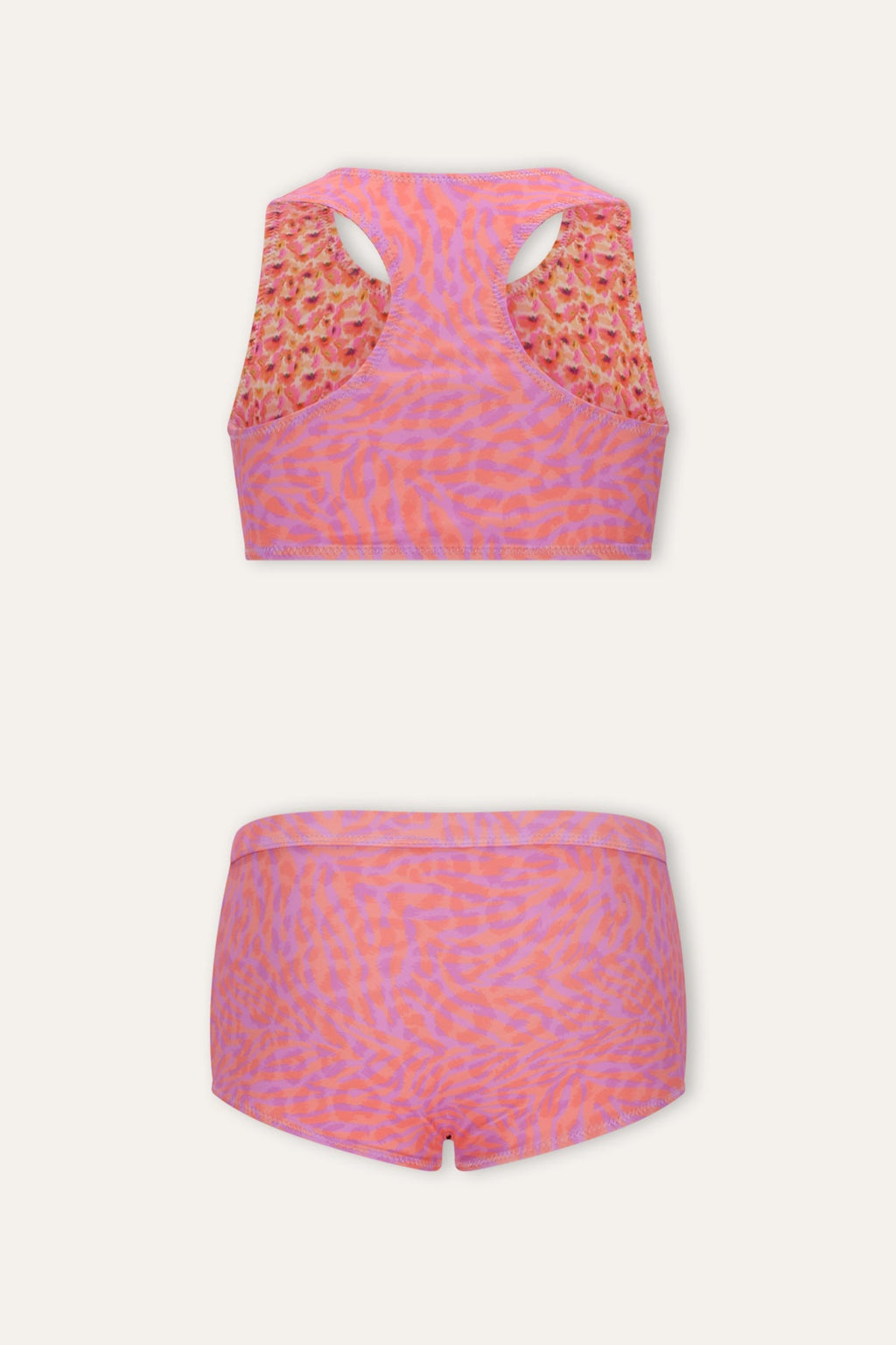 Maak van elke stranddag een feestje met de B.Nosy Bikini Winona Zebra! Deze vrolijke bikini is met zorg gemaakt en zorgt ervoor dat jouw kleine meid volop kan genieten van waterpret. De bikini is reversible, wat betekent dat je kunt kiezen tussen een schattige zebra print met paars en oranje of een toffe bloemenprint in geel en oranje. Perfect voor alle avonturen!