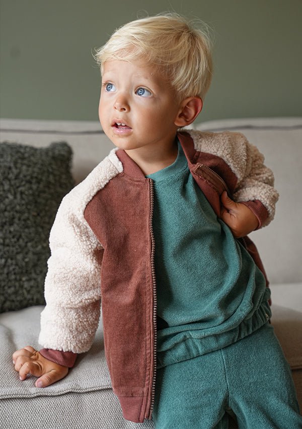 De bowie houdt jouw kindje lekker warm deze winter, ideaal als een extra laagje. Het gebruik van twee verschillende zachte materialen maakt deze tussenjas een echte eye-catcher. Door de warm beige en bruine kleuren van de Bowie is de tussenjas makkelijk te combineren.