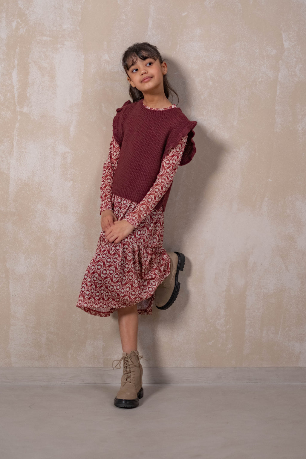 De Like Flo Dani Spencer gilet is een stijlvol en comfortabel item voor meisjes! Uitgevoerd in een levendige rode kleur, maakt dit gilet elke outfit bijzonder. De speelse ruffles en de zachte stof zorgen voor een modieuze én aangename pasvorm. Combineer met de Mae jurk voor een complete en trendy look. Een must-have die zowel praktisch als fashionable is. Scan de QR-code en ontdek het verhaal achter dit kledingstuk!