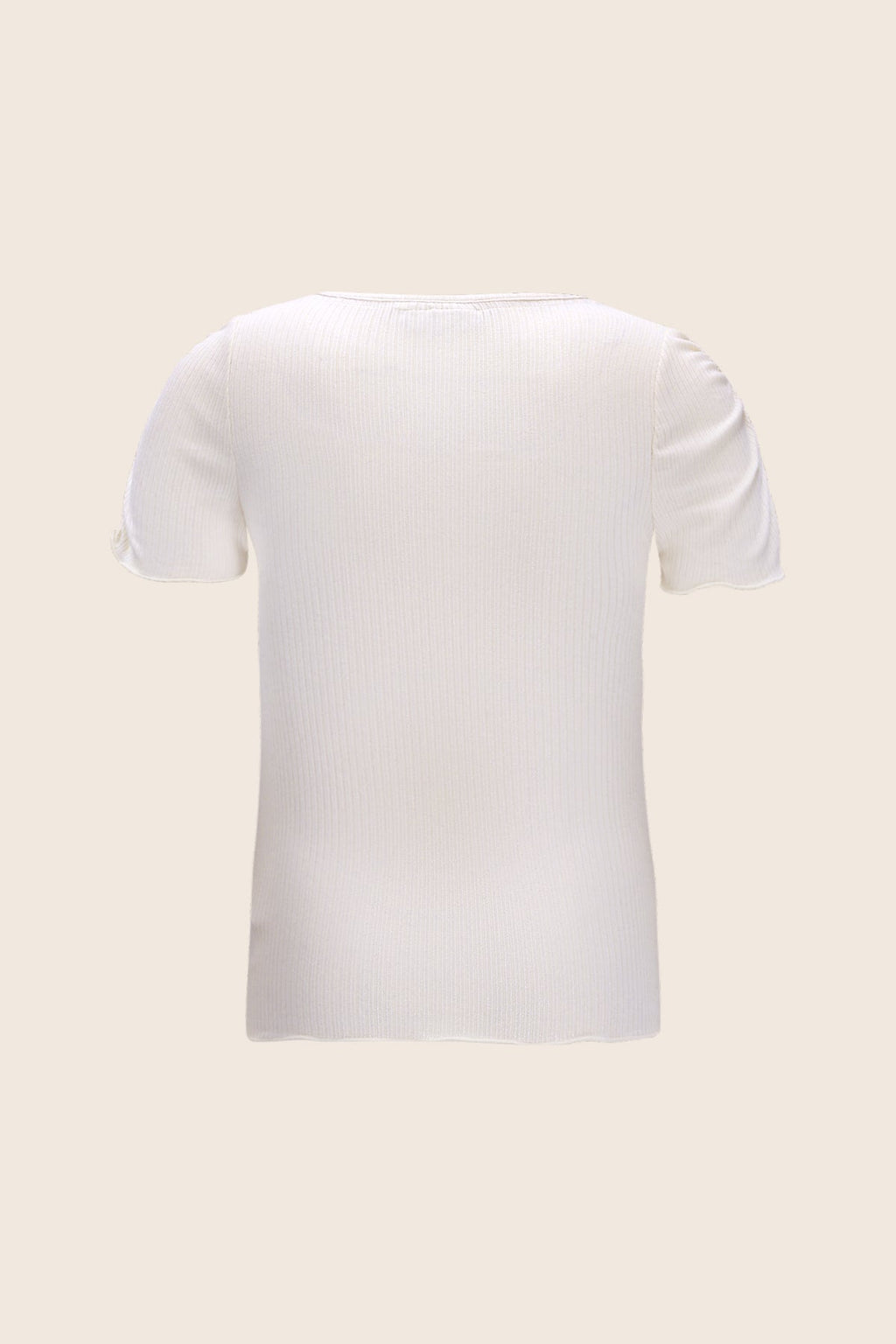 De Elise top van Like Flo is een trendy must-have voor elke meisjesgarderobe. Deze stijlvolle off white top is perfect voor casual dagen en feestelijke gelegenheden en biedt eindeloze mix en match mogelijkheden. De trendy pasvorm met elastische mouwaccenten maakt deze top uniek en comfortabel.