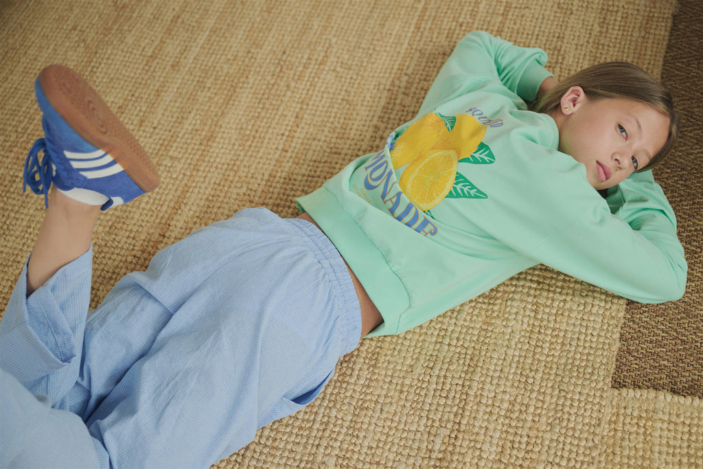 Deze groene Kim Sweater van Nobell' is de perfecte toevoeging aan de garderobe van elk tienermeisje. Met zijn unieke 'Lemonade' citroenen print op de rug is het een echte eyecatcher die zorgt voor een stralende look. De comfortabele pasvorm en trendy uitstraling maken deze sweater ideaal voor dagelijks gebruik.