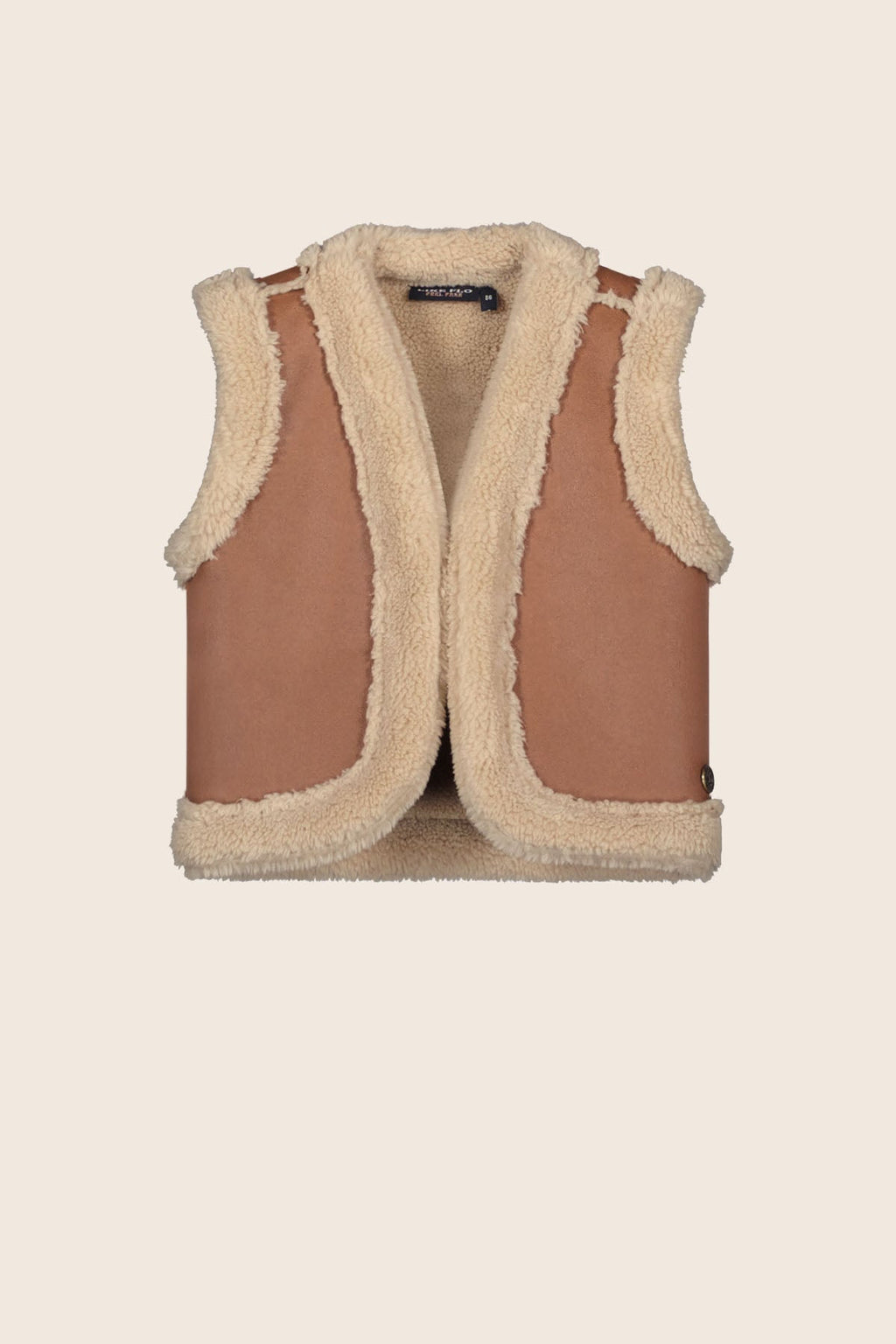 Het giletje GITA in een rijke cognac kleur is een veelzijdig item voor elke mini. Dit giletje is gemaakt van PU-leer en is gevuld met zachte teddy stof aan de binnenkant, perfect voor de koudere dagen. Je kunt het giletje super makkelijk combineren en het past bij bijna elke outfit. Draag het bijvoorbeeld over het jurkje RUBY voor een leuke look of combineer het met het broekje JUNA in dezelfde cognac kleur voor een samenhangende outfit.