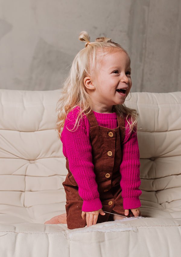 Mase is een echte favoriet, oftewel dé ultieme basic voor in de kast van jouw kleintje! De mooie donker roze kleur maakt dat dit item een echte eye-catcher is. Deze gebreide trui is perfect voor het najaar en in de winter, het natuurlijke materiaal zorgt ervoor dat het lekker warm aan voelt! De trui valt goed op maat maar hou jij nou ook zo van een oversized look? Bestel dan gerust een maatje groter en rol de mouwen op voor een extra speels effect. Gemaakt van duurzaam katoen.