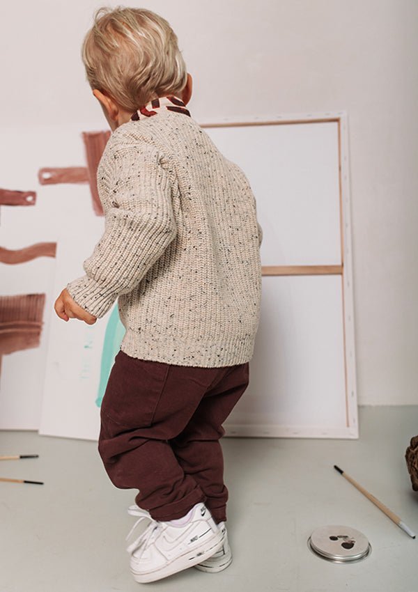 Een echte favoriet de Miles, oftewel dé ultieme basic voor in de kast van jouw kleintje! De zachte beige kleur maakt dat dit item heel makkelijk te combineren is. Dit gebreide vest is perfect voor het najaar en de winter, het natuurlijke materiaal zorgt ervoor dat het lekker zacht aan voelt! De mooie houten knoopjes geven het een extra luxe uitstraling. Het vest valt goed op maat, hou jij nou ook zo van een oversized look? Bestel dan gerust een maatje groter en rol de mouwen op voor een extra speels effect.