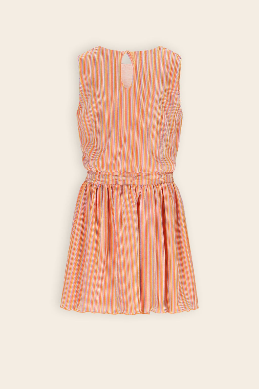 Dieses ärmellose Kleid von NoNo ist ein Must-have für Mädchen, die Farbe und Komfort lieben. Der Plisseestoff fühlt sich wunderbar weich an und der fröhliche Streifenprint macht jedes Outfit komplett. Ein verspieltes und abenteuerliches Teil, das den einzigartigen Stil Ihrer Tochter unterstreicht.