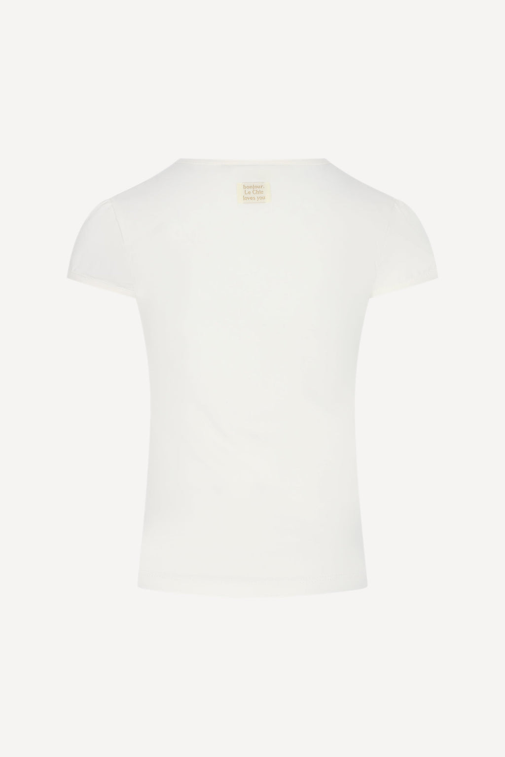 Laat je meisje zich voelen als een prinses in dit prachtige off-white NOMMY bloem T-Blouses van Le Chic. Ontworpen met oog voor detail, zoals het luxe bloemetje van tule en kraaltjes op de borst, is dit T-Blouses een feestelijk accent voor elke gelegenheid. De hoogwaardige kwaliteit en stijlvolle uitstraling maken dit een exquise toevoeging aan haar garderobe. Ideaal voor speciale momenten, van communie tot bruiloft.