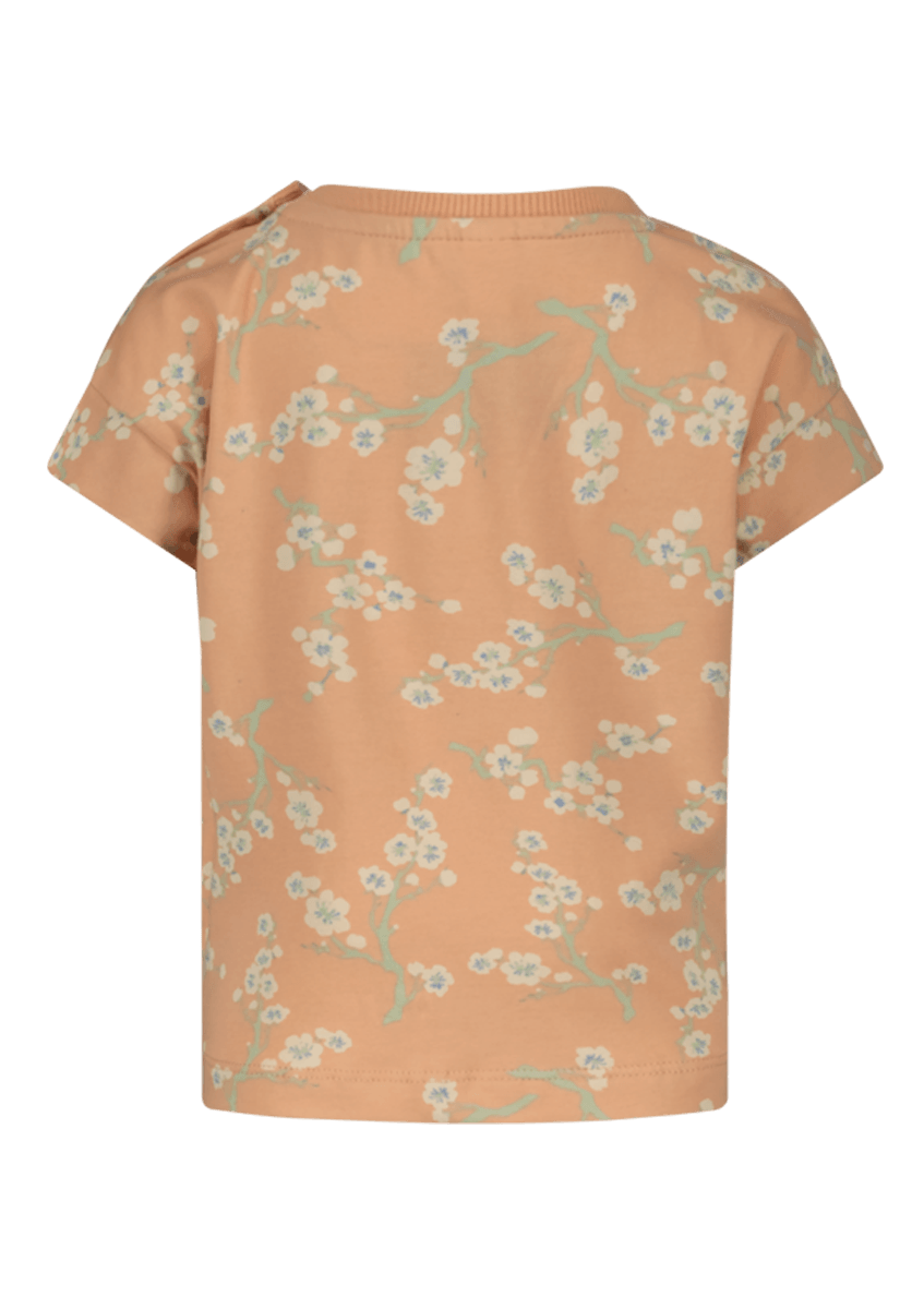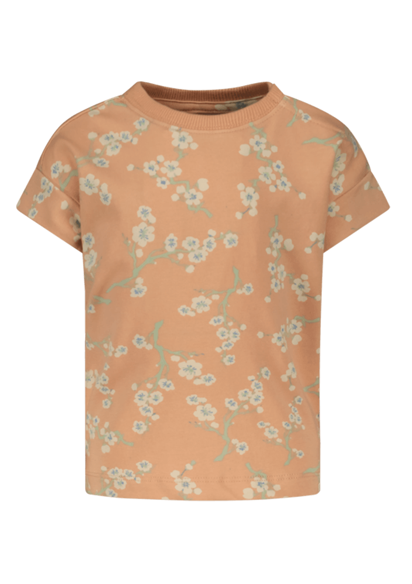 T-shirt Saar is de nieuwe favoriet van jouw mini! Dit shirt heeft een zachte peach kleur met een mooie bloesem print. Combineer deze top met de matchende fla rood broek Julie. Super girly én eigenwijs tegelijk! Gemaakt van duurzaam katoen.