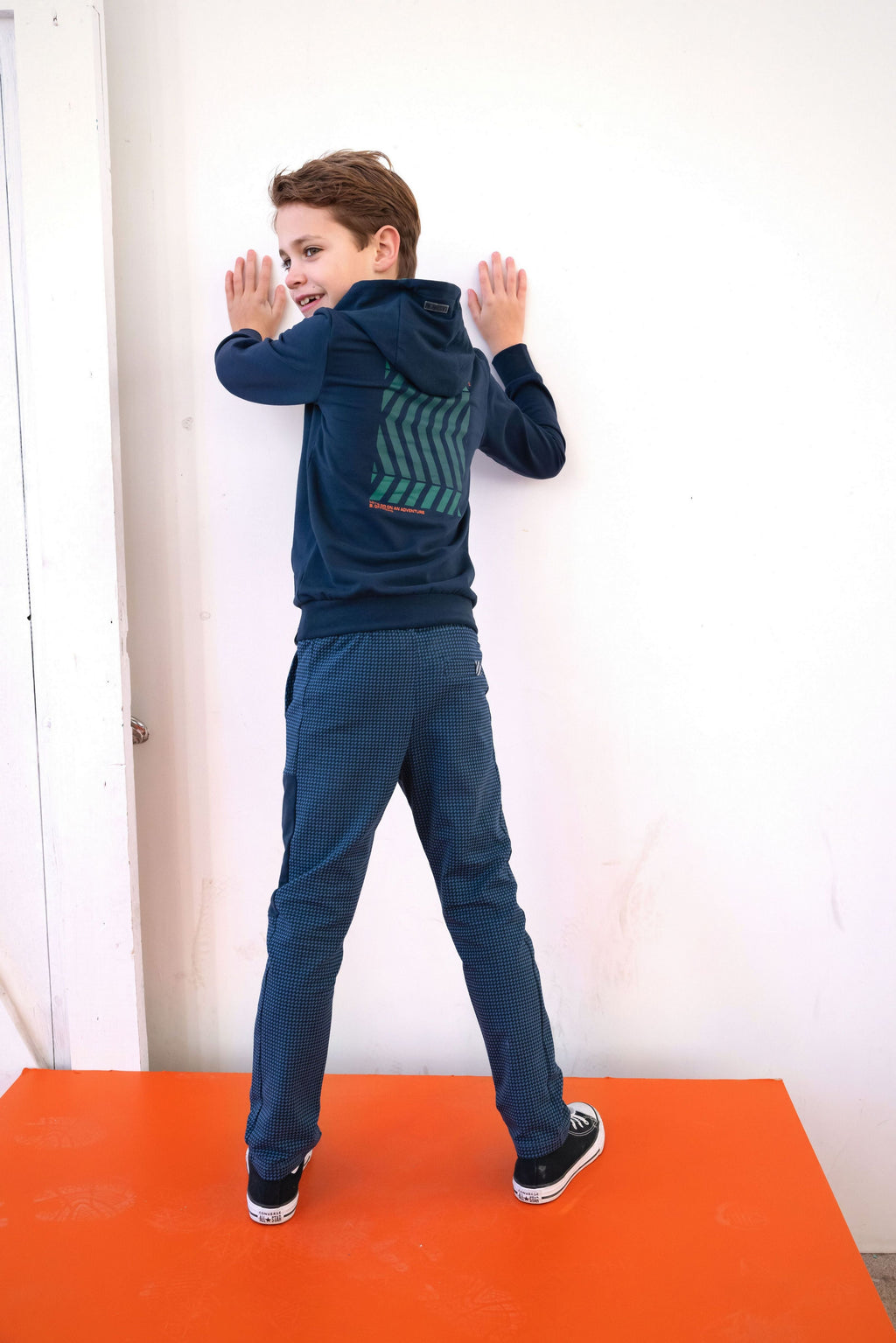 De Okke broek is echt super tof! Deze donkerblauwe broek heeft een super toffe puzzle print, dit maakt dit item echt uniek! De broek is gemaakt van een fijne stretchy stof waardoor je er fijn in kan bewegen. Je combineert deze broek gemakkelijk met één van de toffe t-shirts of truien uit deze collectie!