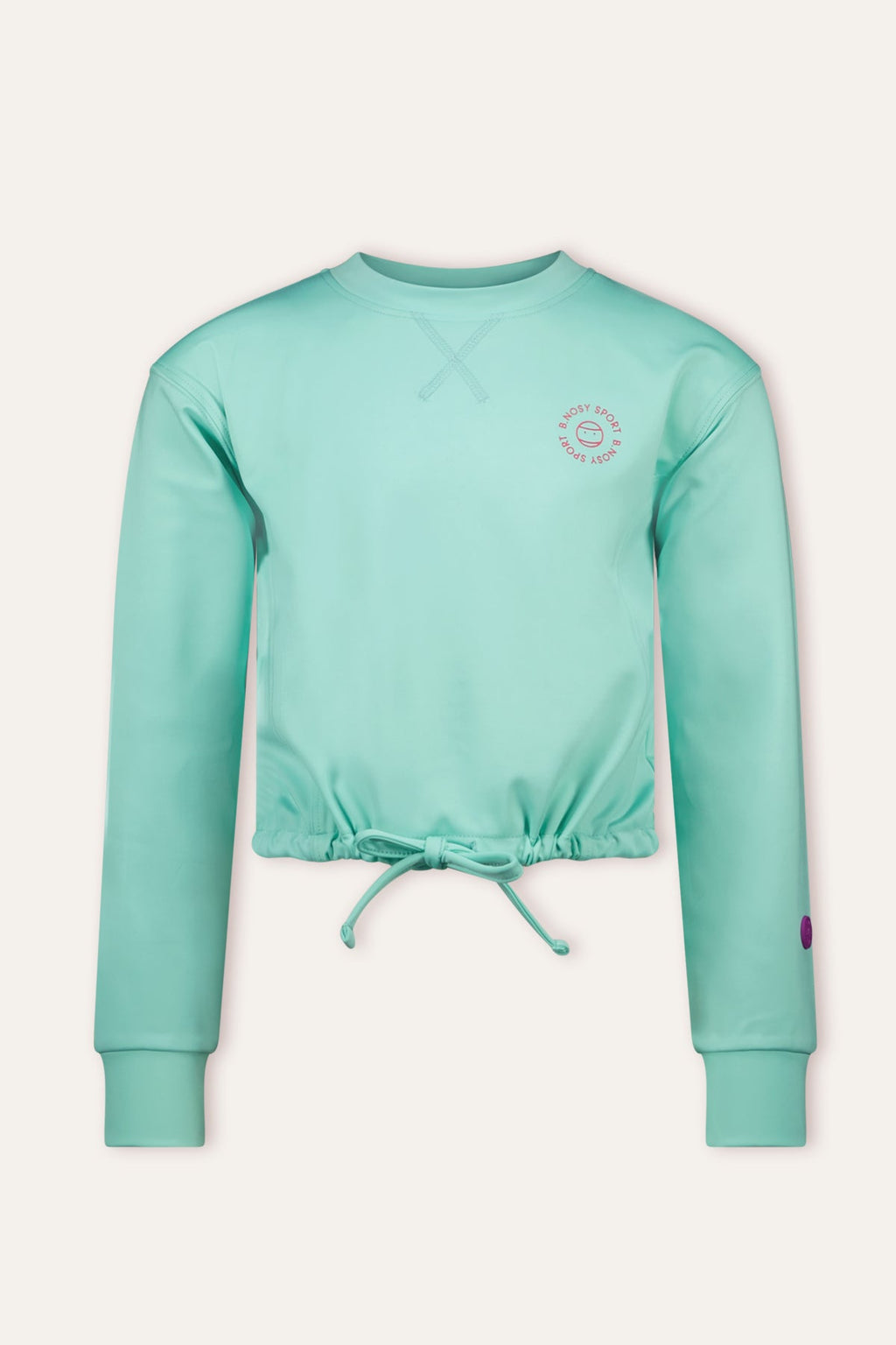 Deze aquakleurige meisjessweater met koord is een perfecte keuze om jonge sportsters in stijl en comfort te laten bewegen. Perfect voor Schoolgym, sporttrainingen óf gewoon als een comfy outfit! Deze B.Nosy sweater is dé ultieme aanvulling op jouw garderobe.