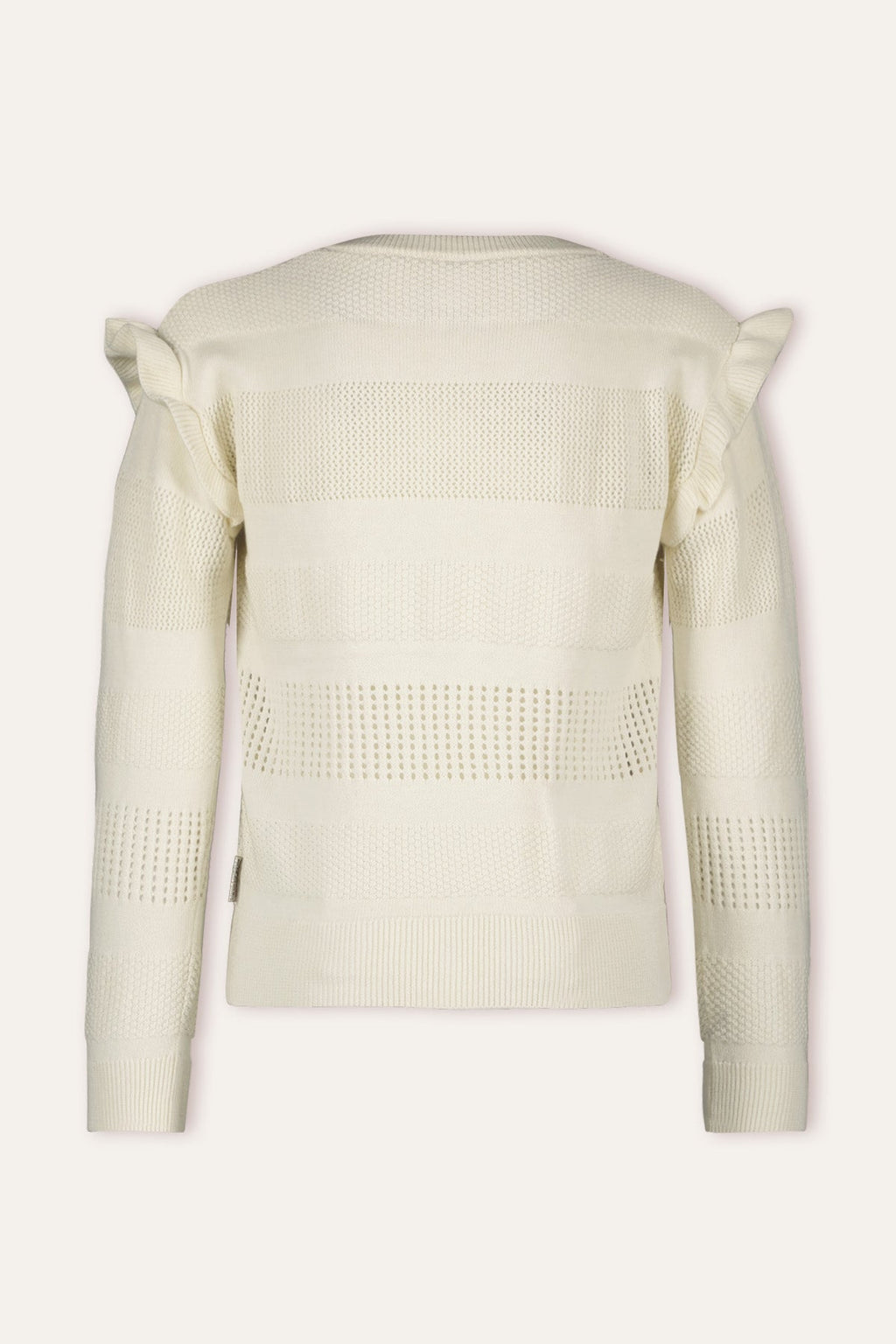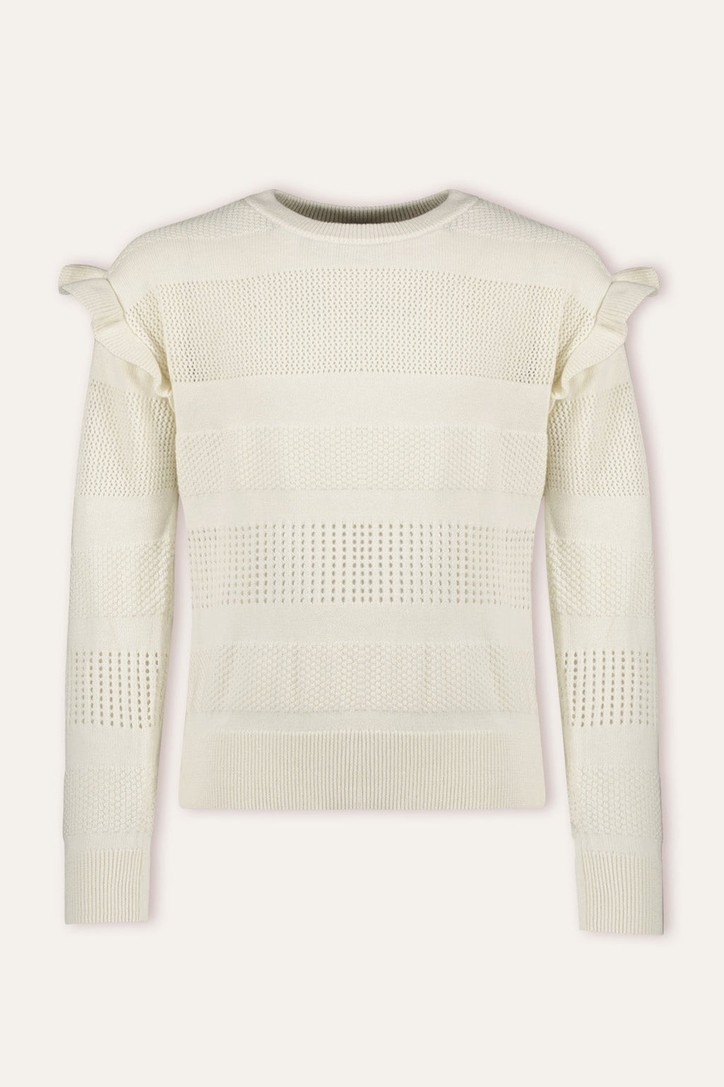 Trui Feline heeft een speciale manier van breien, helemaal uniek dus! De ecru kleur is makkelijk te combineren met de andere items uit onze collectie.