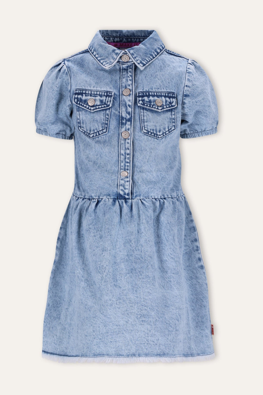 B.Nosy spijkerjurk met pofmouwen – Denim blauw