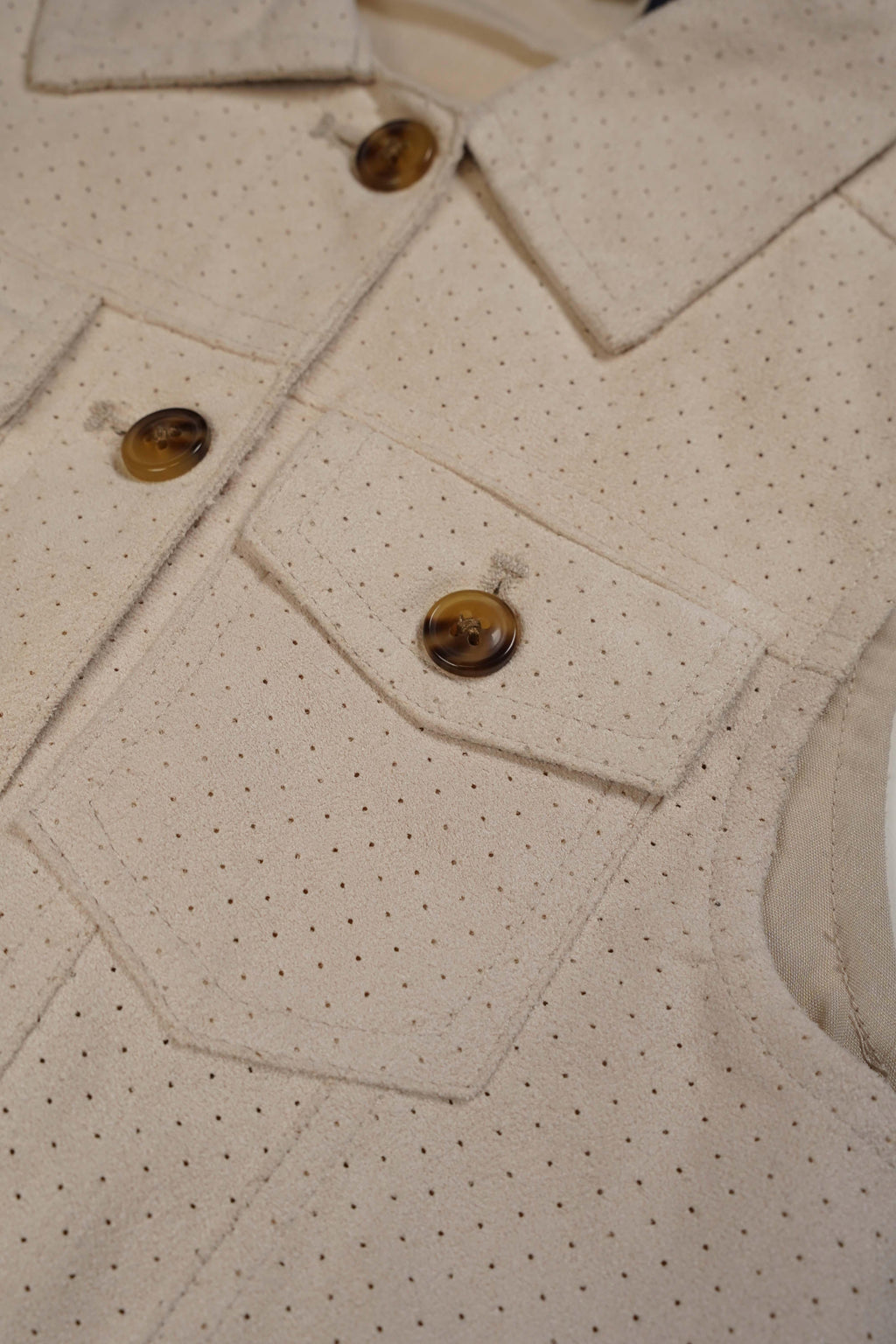 Laagjes, daar houden we van bij NONO. Maak je outfit stoer door te combineren met deze geperforeerde fake suede gilette.
