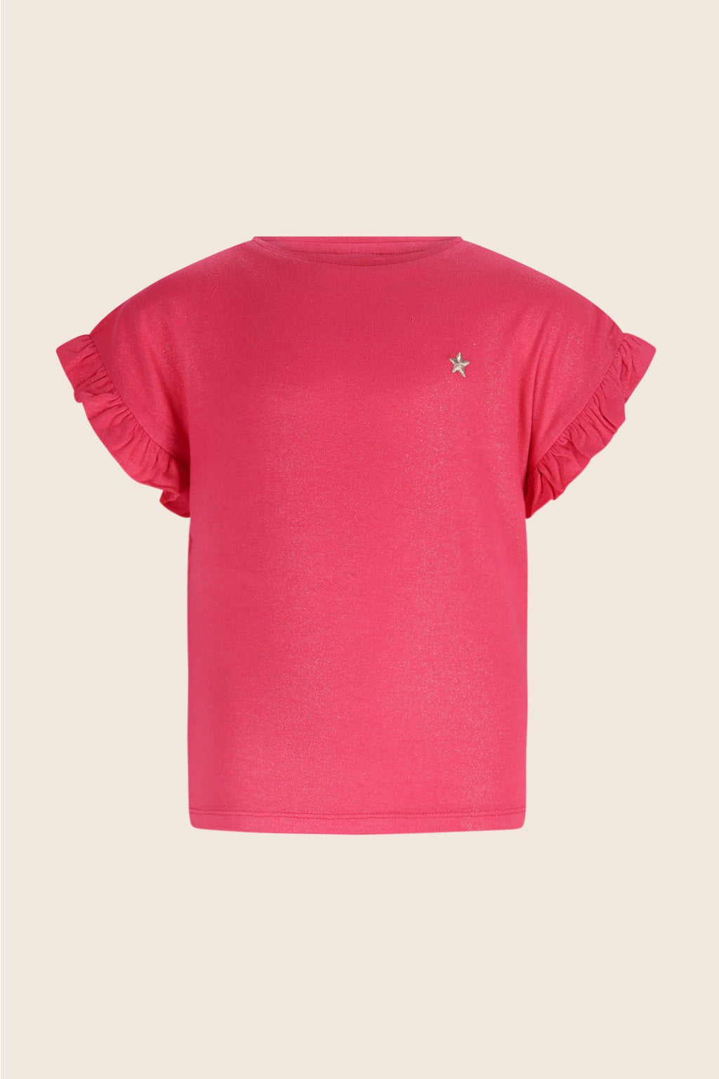 essential voor de zomer. De stof voelt heerlijk zacht aan, heeft een prachtige pasvorm én een subtiele glitter print. Verkrijgbaar in verschillende kleuren, is deze top perfect om te mixen & matchen met je hele garderobe.