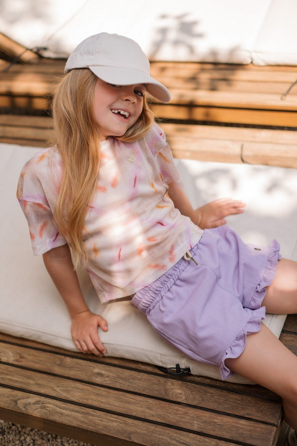 De Fiona Shorts in paars van Like Flo is dé trendy keuze voor elke gelegenheid. Comfortabel gemaakt van 100% katoen, deze short is perfect voor vrolijke zomerdagen. Met handige zakken en een unieke afwerking met roesels is het een absoluut blikvanger! Vergeet niet hem te combineren met de Top Evelijn voor een complete look!