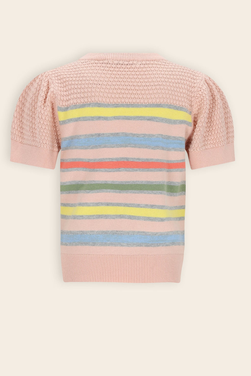 • Prachtig gestreepte multikleuren gebreide top met ajour details.