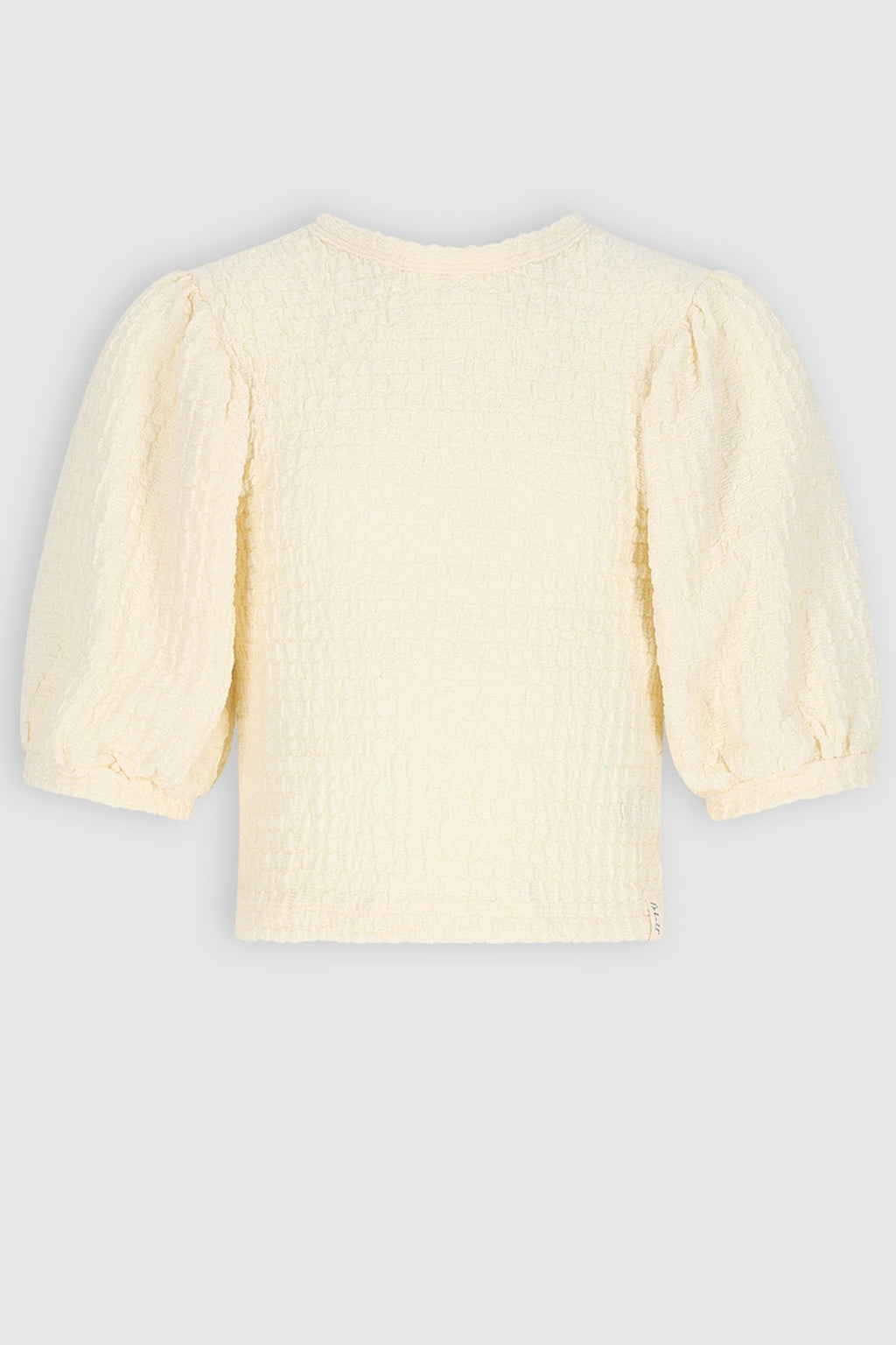 Ontdek de Nobell' Kylias top, speciaal voor tienermeiden! Deze ivoren top heeft een unieke structuur en opvallende pofmouwen, wat zorgt voor een trendy en stijlvolle look. Perfect voor een casual dag of om je outfit een statement te geven.