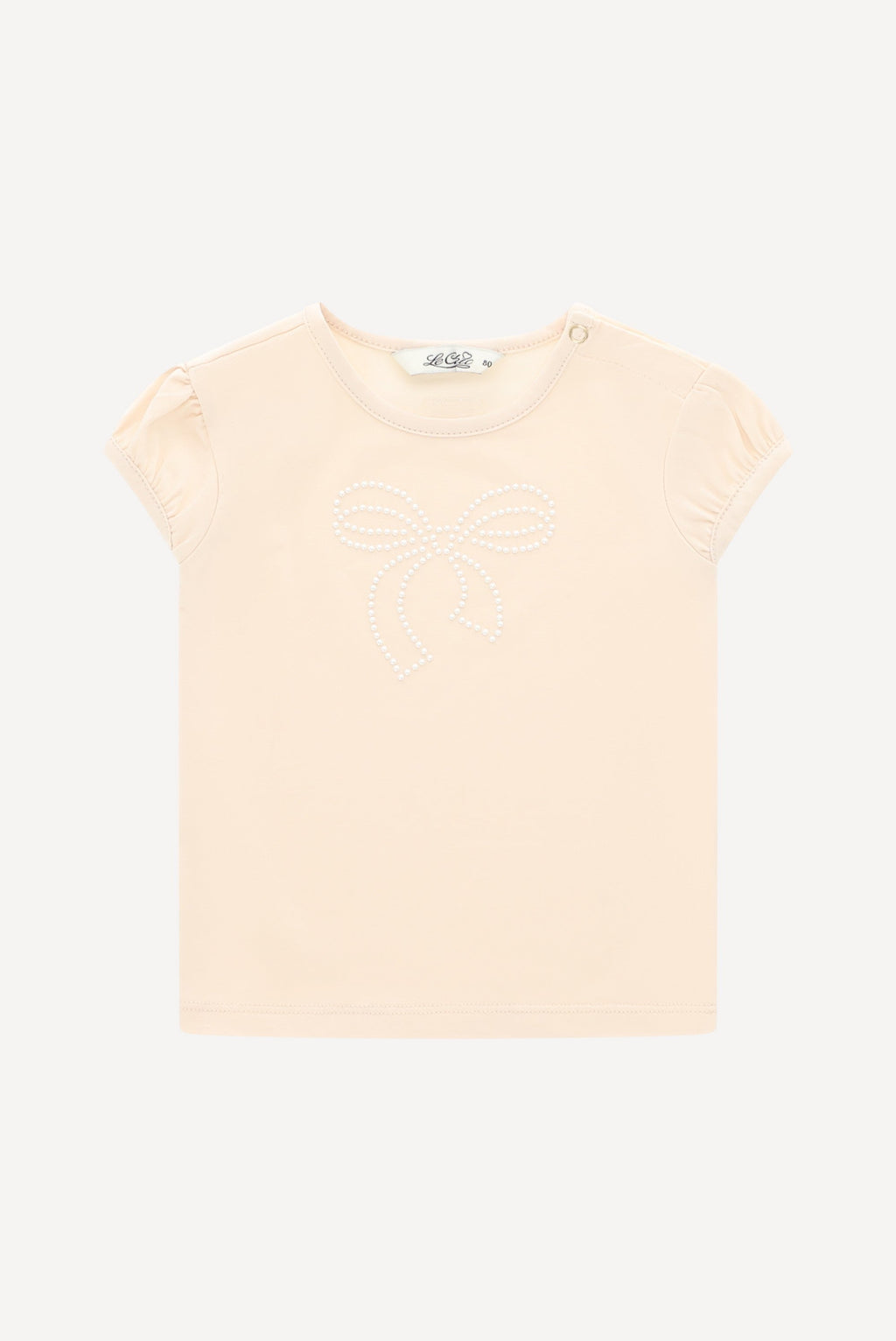 Biologisch stretch katoen, parelstrik applicatie