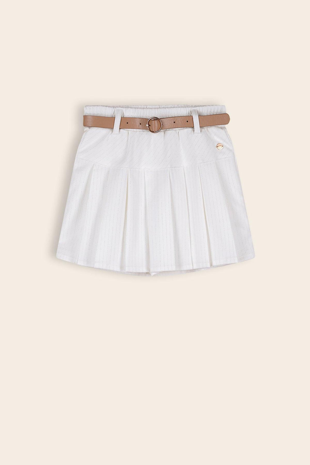 Aan de voorkant een plooirokje met alle gemakken van een broek, want het is namelijk een broekje! Verfijnd zilver lurex streepje maken dit broekrokje feestelijk. Style het af met het bijbehorende colbertje Dip.