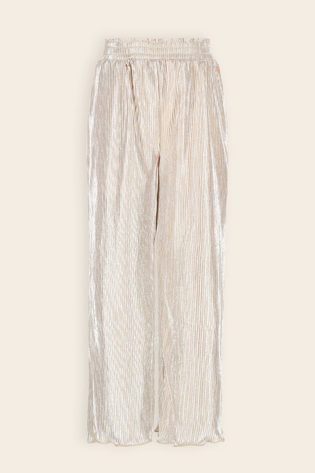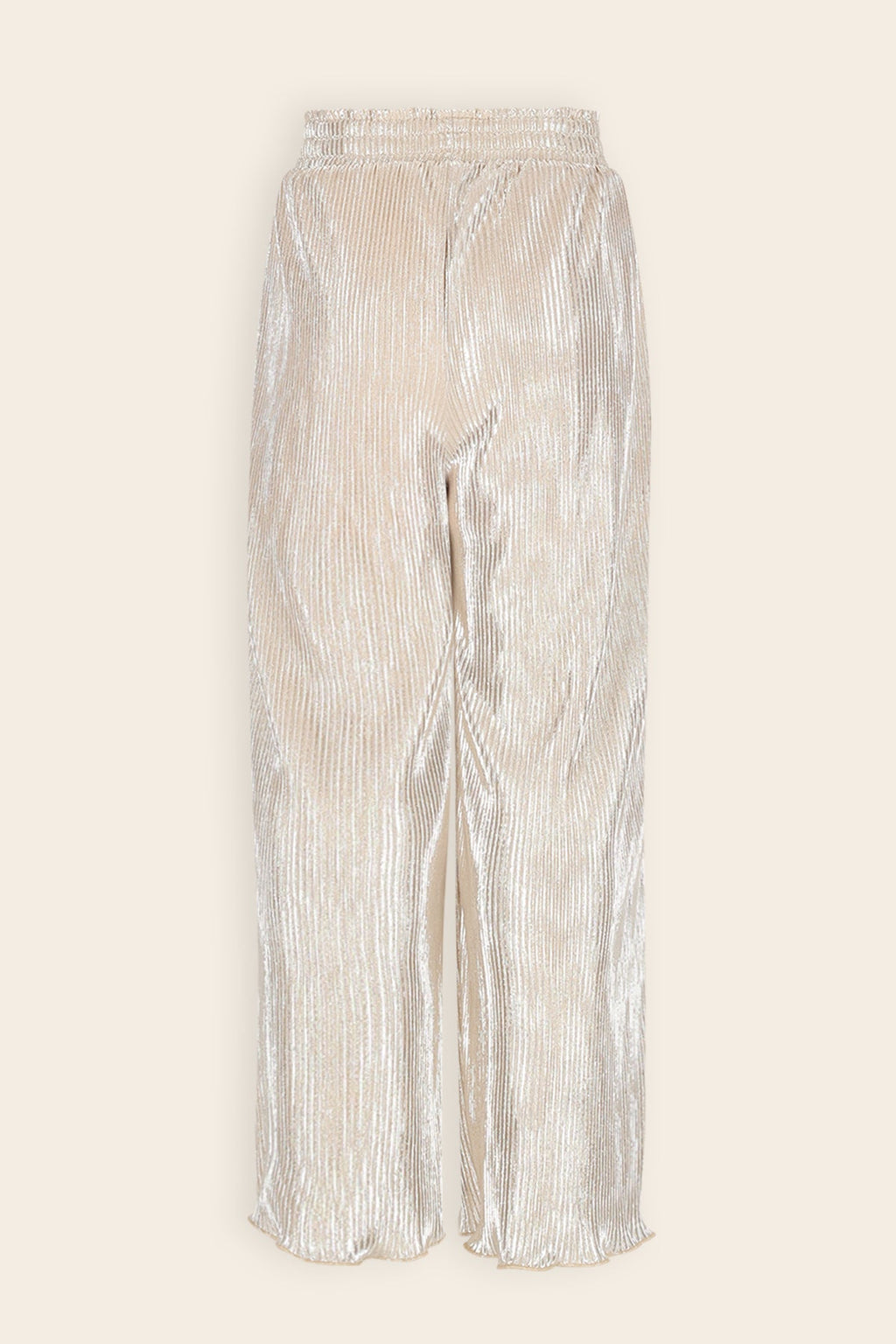 Ontdek de speelse uitstraling van de NoNo Sun Metallic Plissee Palazzo Broek! Dit stijlvolle broekje in ivoor is perfect voor avontuurlijke meiden. Het unieke plissee-design geeft een vrolijke twist aan elke outfit. Gemaakt van hoogwaardige materialen zorgt deze broek ervoor dat je je vrij kunt bewegen, terwijl het voerde van zachte jersey voor extra comfort zorgt.• Bijzonder item dat goed te combineren is met diverse tops.