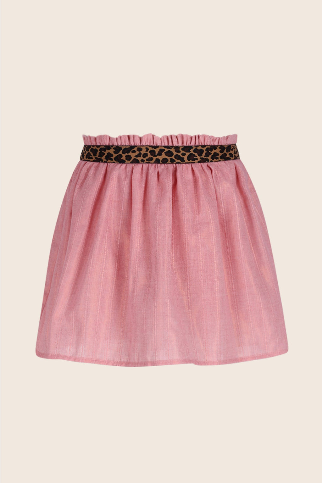 Rokje van een prachtige stof met lichte glitterprint. Het rokje heeft een broekje aan de binnenkant, superpraktisch. Panter elastiek bij taille als leuk detail en voor comfortabele pasvorm.