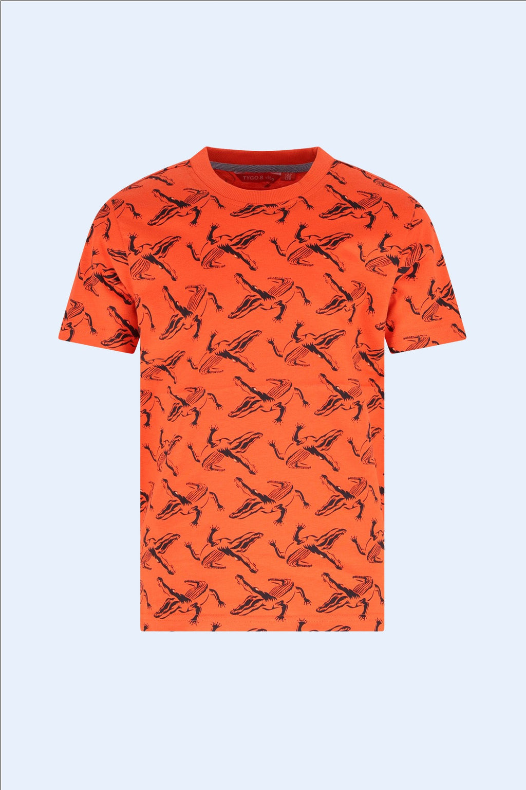 Dit vrolijke oranje T-shirt Thijs van TYGO & vito is een super must-have voor iedere jongen. Gemaakt van 100% biologisch katoen, GOTS gecertificeerd, voelt dit shirt heerlijk zacht aan. Het shirt heeft een gave, avontuurlijke all-over print die direct de aandacht trekt. Perfect voor de boys die er graag opuit gaan en een relaxte look willen. Dit T-shirt combineer je makkelijk met de baggy fit short Bram Extra Light Used voor een complete outfit.
