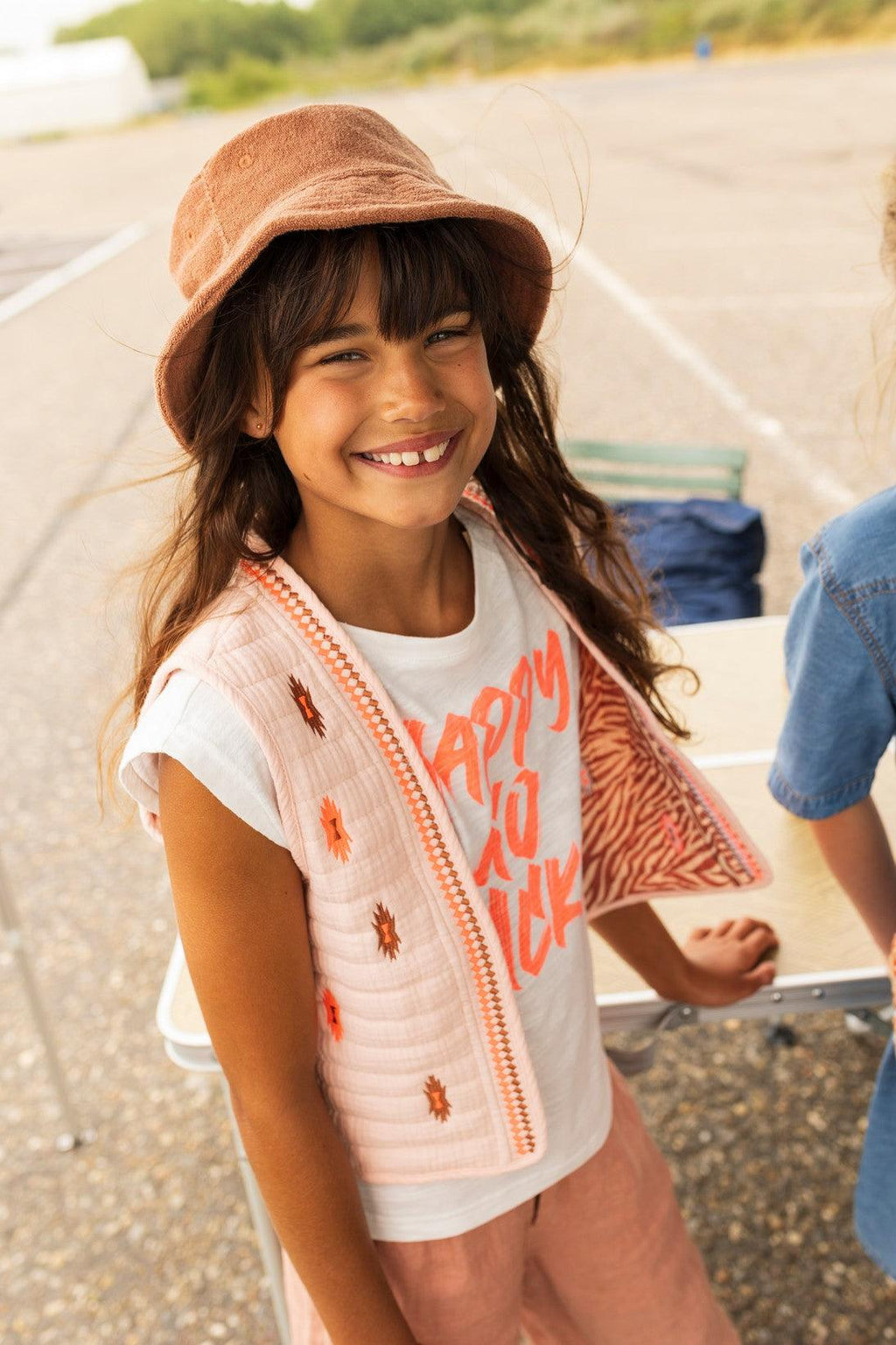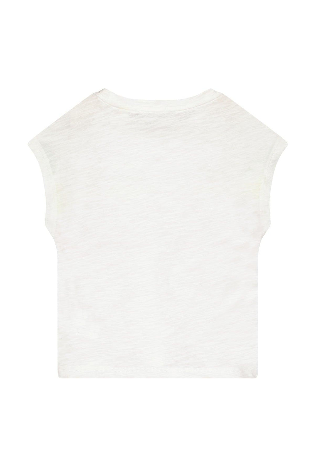 Luna essential top HAPPY White, gemaakt van een heerlijke zachte slub jersey en een oversized fit. Happy go Lucky.