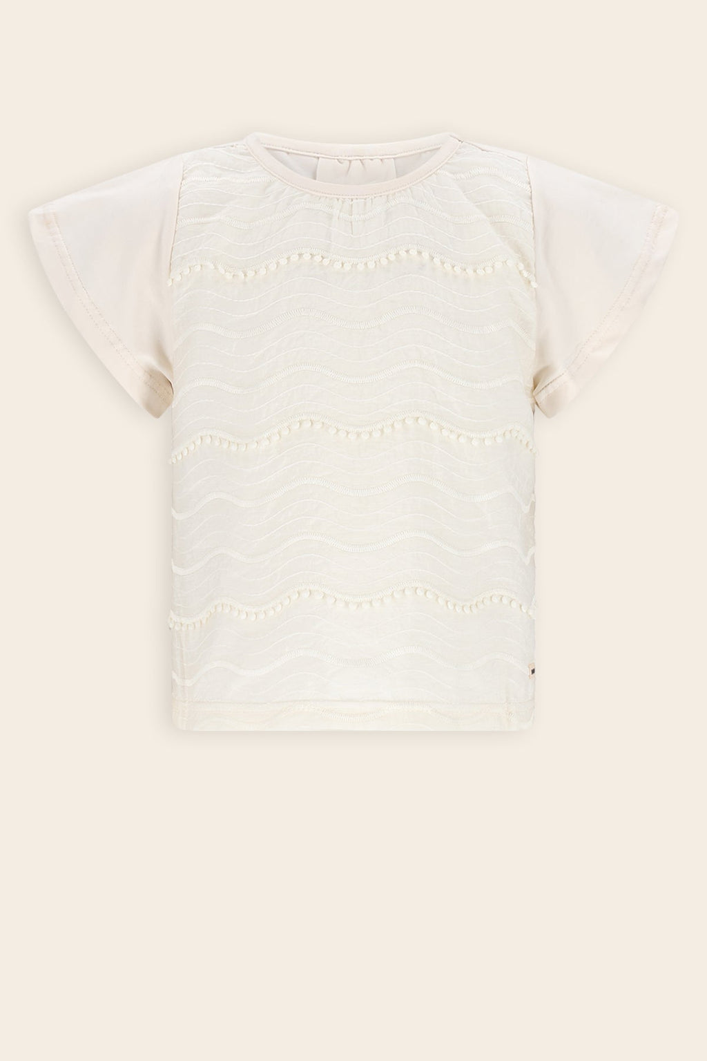 De Tobi blouse tshirt van NoNo in ivoor is een perfecte combinatie van speelsheid en stijl. Dit shirt, met zijn unieke pompoms en verfijnde borduur, geeft elke outfit een vrolijke twist. Gemaakt van 100% polyester is het shirt comfortabel en geschikt voor alledaagse avonturen. Combineer het met de Ninu PomPom Rok Ivoor voor een complete en vrolijke look! Laat je dochter schitteren met deze must-have!• Ideaal voor casual en feestelijke gelegenheden