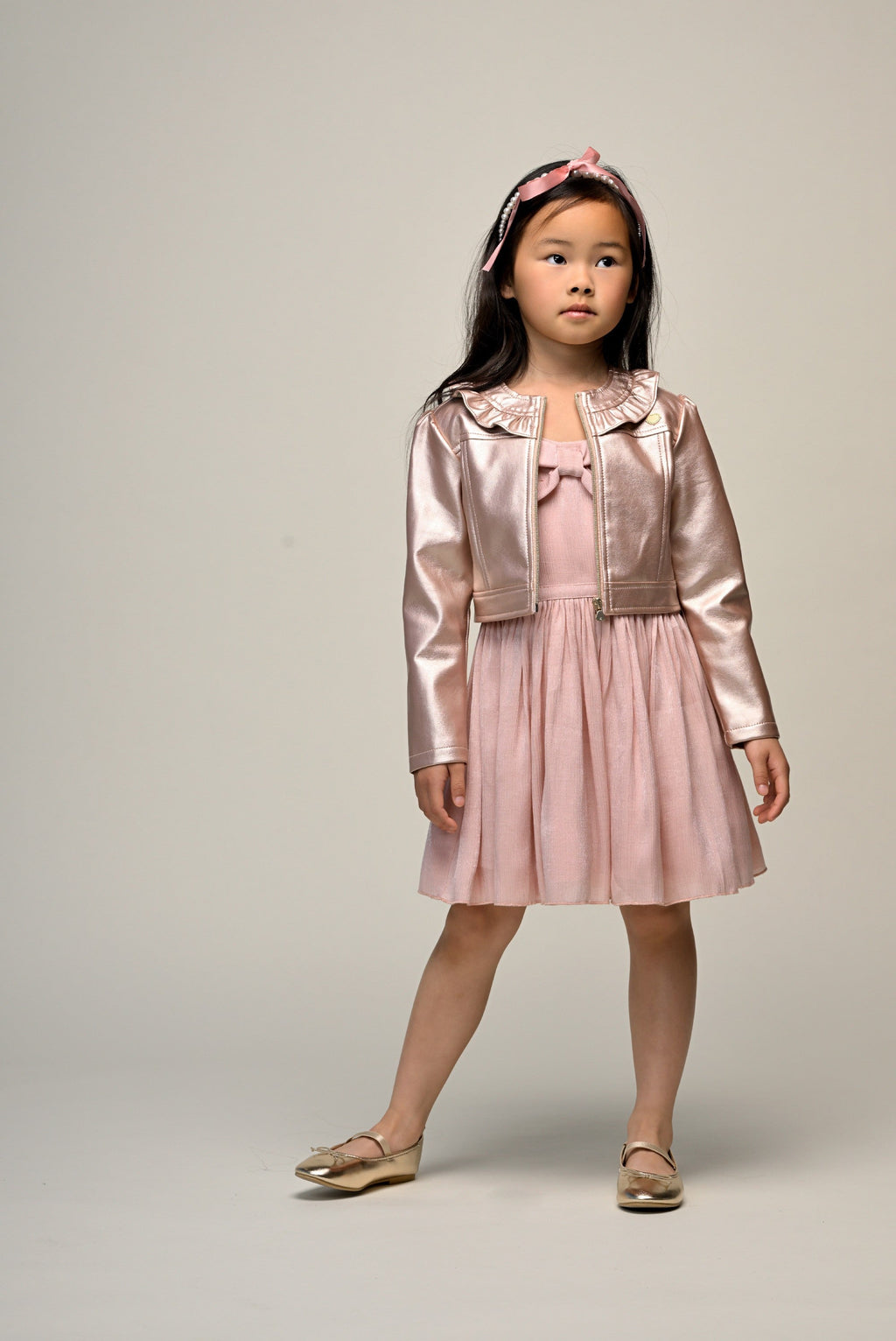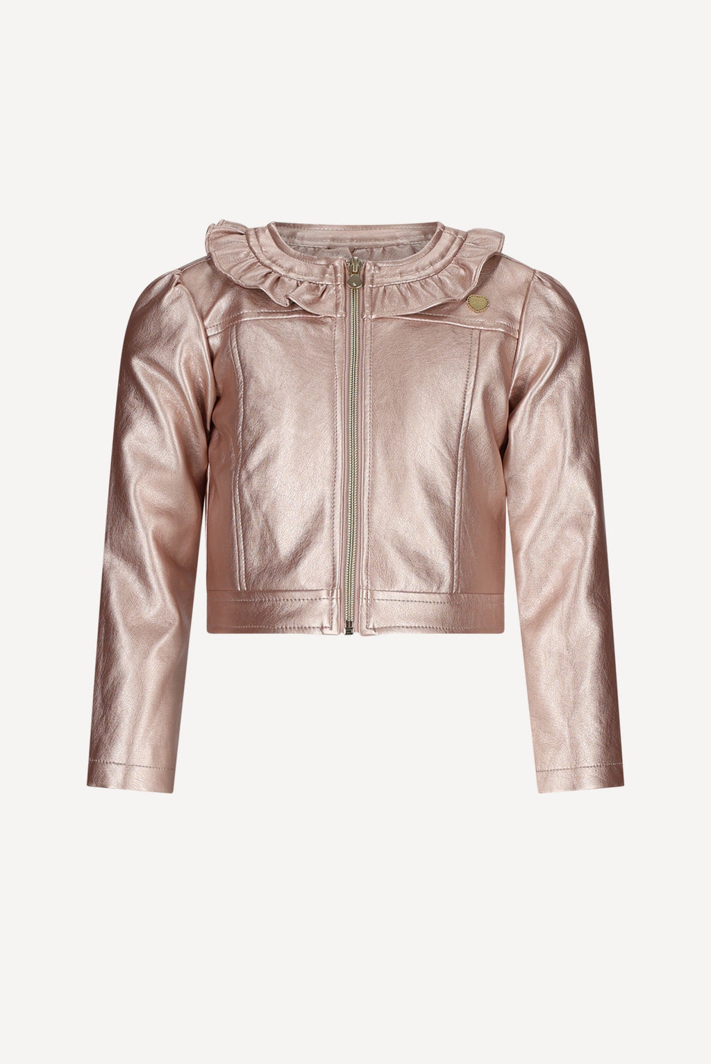 Dit stijlvol fake leather jack brengt elke outfit naar een hoger niveau. Dit chique jack is gemaakt van PU-leer en heeft prachtige details zoals pofmouwen en een glanzende afwerking. Het jack is perfect te combineren met de gehele collectie en zorgt ervoor dat je dochter zich als een echte prinses voelt.