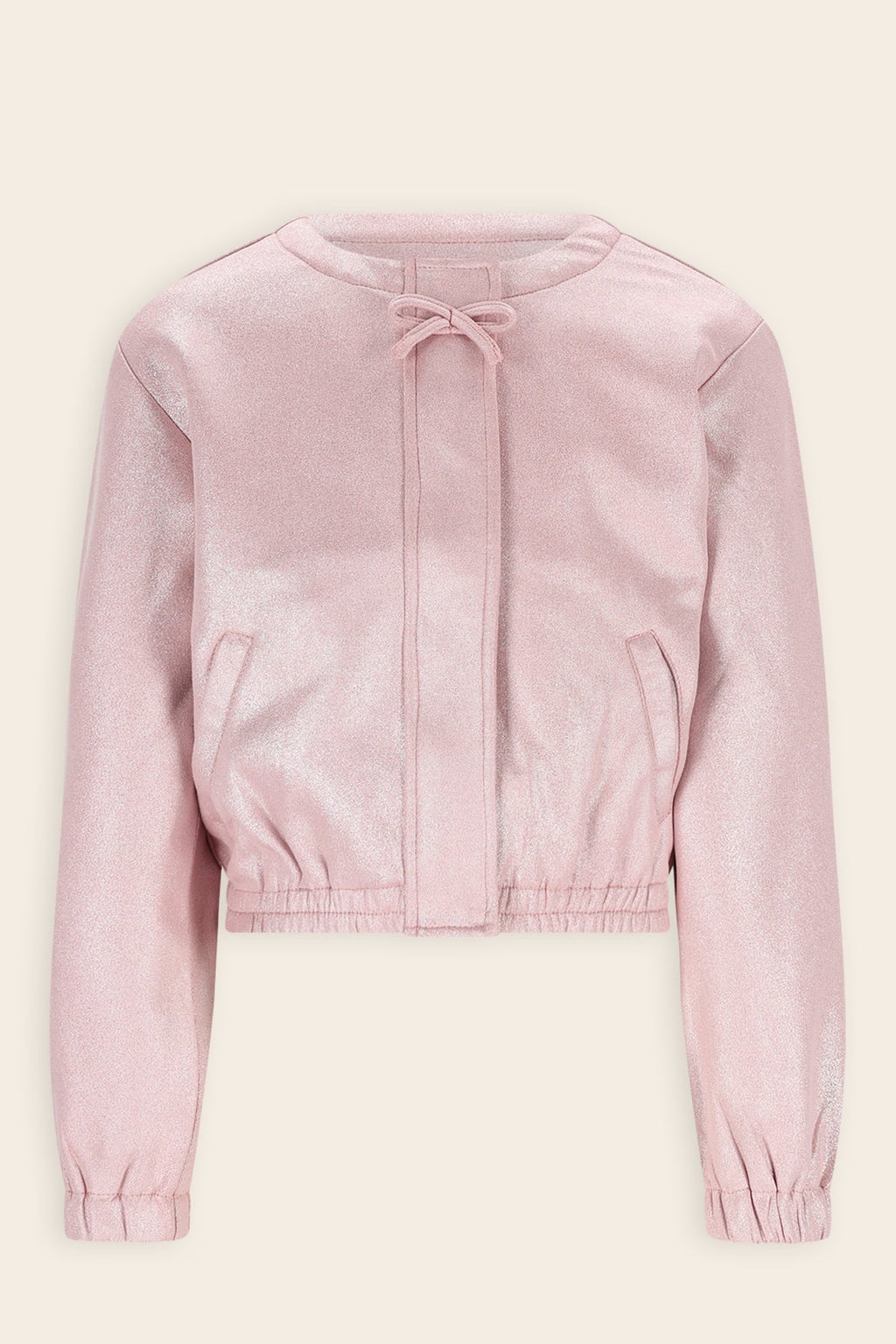 Zachte fake suede roze jasje met lichte glans en elastieken zoom
