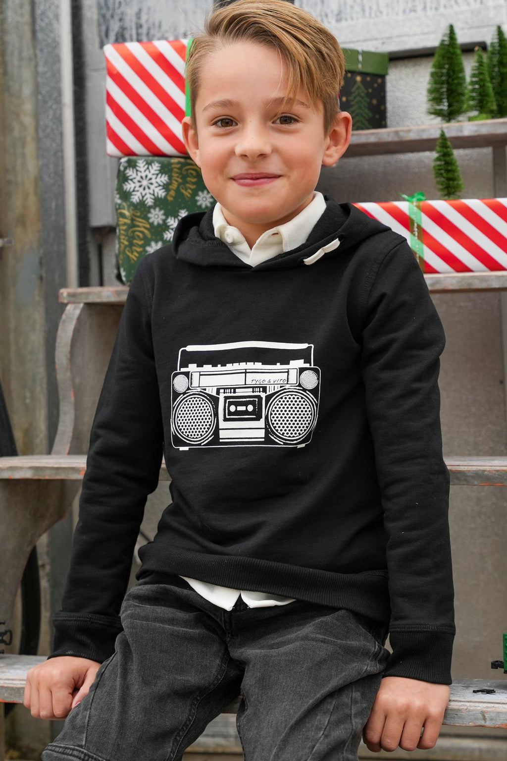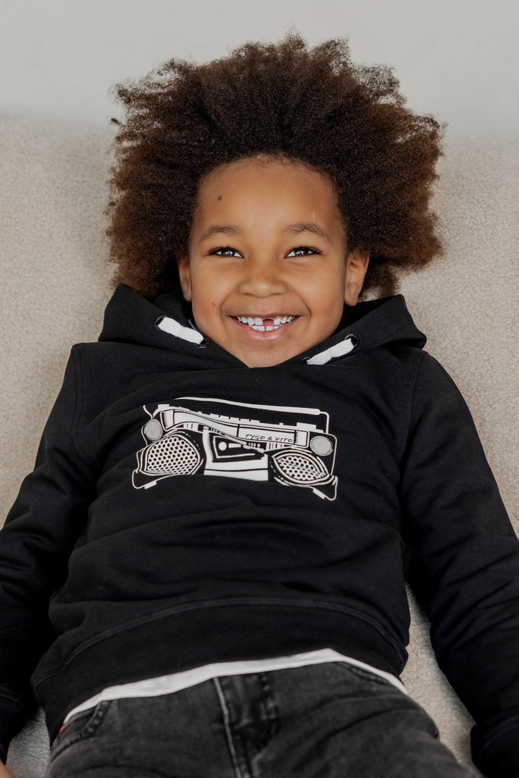 Mooie zwarte hoodie van TYGO & vito met muziek print. Fijn in de herfst, maar ook al mooi voor de partyperiode die er aankomt. Gemaakt in een mix van biologisch stretch katoen en recycled polyester. De hoodie is verkrijgbaar in de maten 92-152. TYGO & vito for a better nexterday!