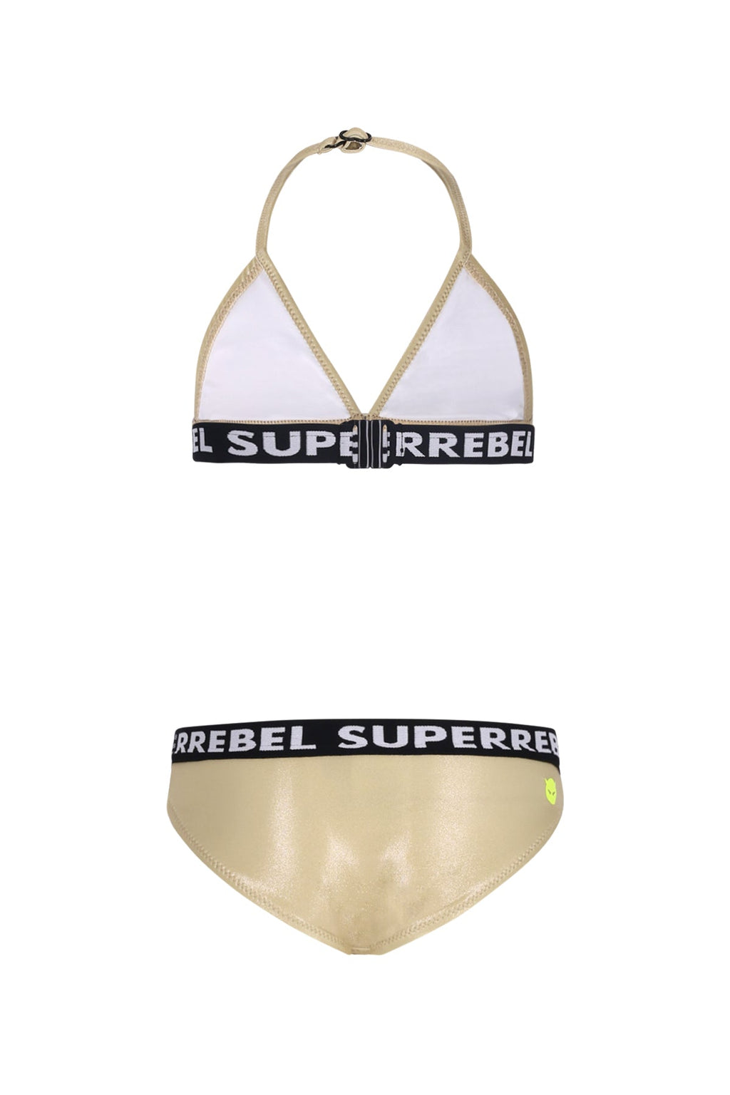 De Isla Triangle Bikini Metallic Gold van SuperRebel is de ultieme keuze voor een sportieve zomer look. Deze bikini is volledig gevoerd en biedt maximale bewegingsvrijheid voor actieve kids. Vervaardigd uit 85% gerecycled polyester, is het een duurzame en coole toevoeging aan elke strand outfit. Laat je lef zien!