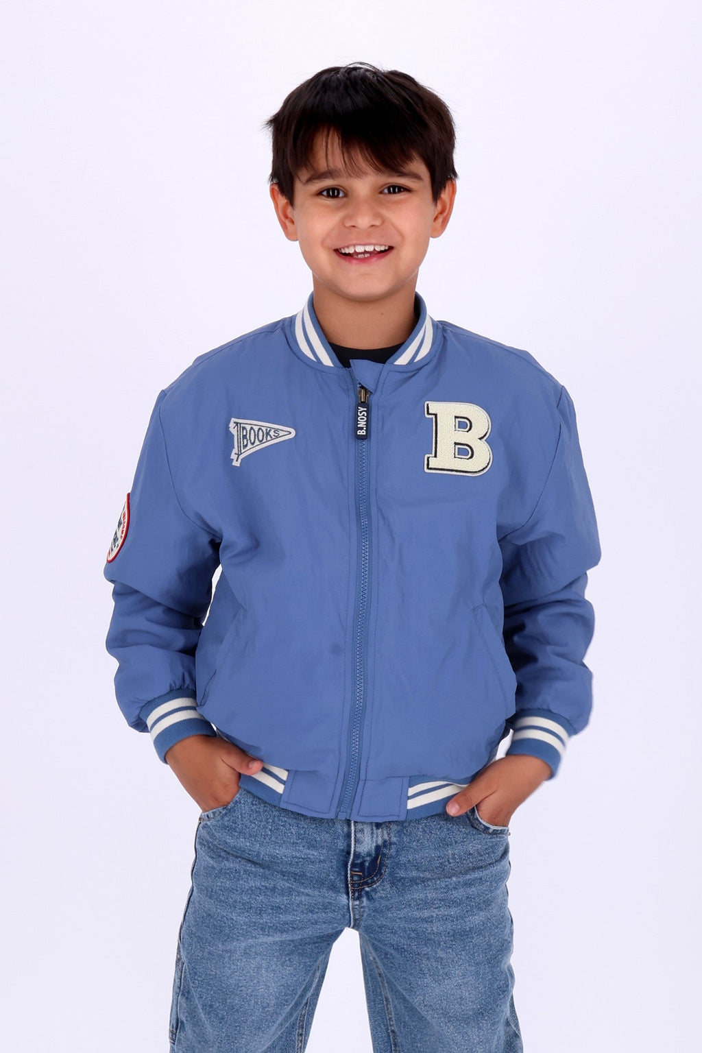 Sporty & cool! Dit B.Nosy bomberjack in blauw is zo’n item dat altijd werkt: naar school, buiten spelen of gewoon omdat het er mega goed uitziet. De patches op de borst geven ‘m karakter, terwijl de rits, zakken en ribboorden zorgen voor een fijne, praktische fit.