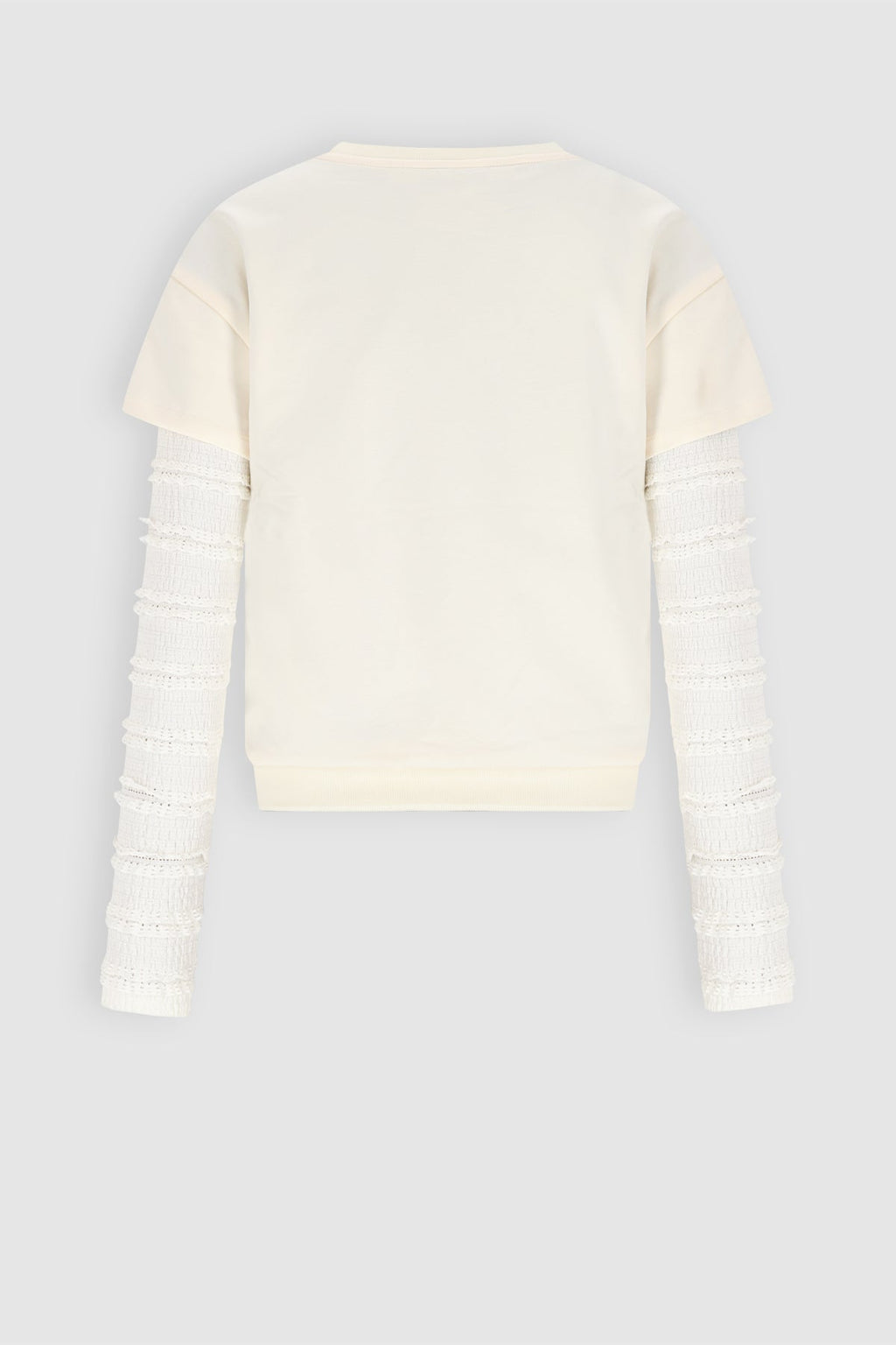 Geef je garderobe een upgrade met de Kase Sweat Top! Deze trendy top in ivoor is een must-have voor elke jongedame die stijl en comfort wil combineren. Met zijn unieke embroidery anglaise details aan de kraag en manchetten is dit een echte eyecatcher.• Perfect voor casual en trendy outfits