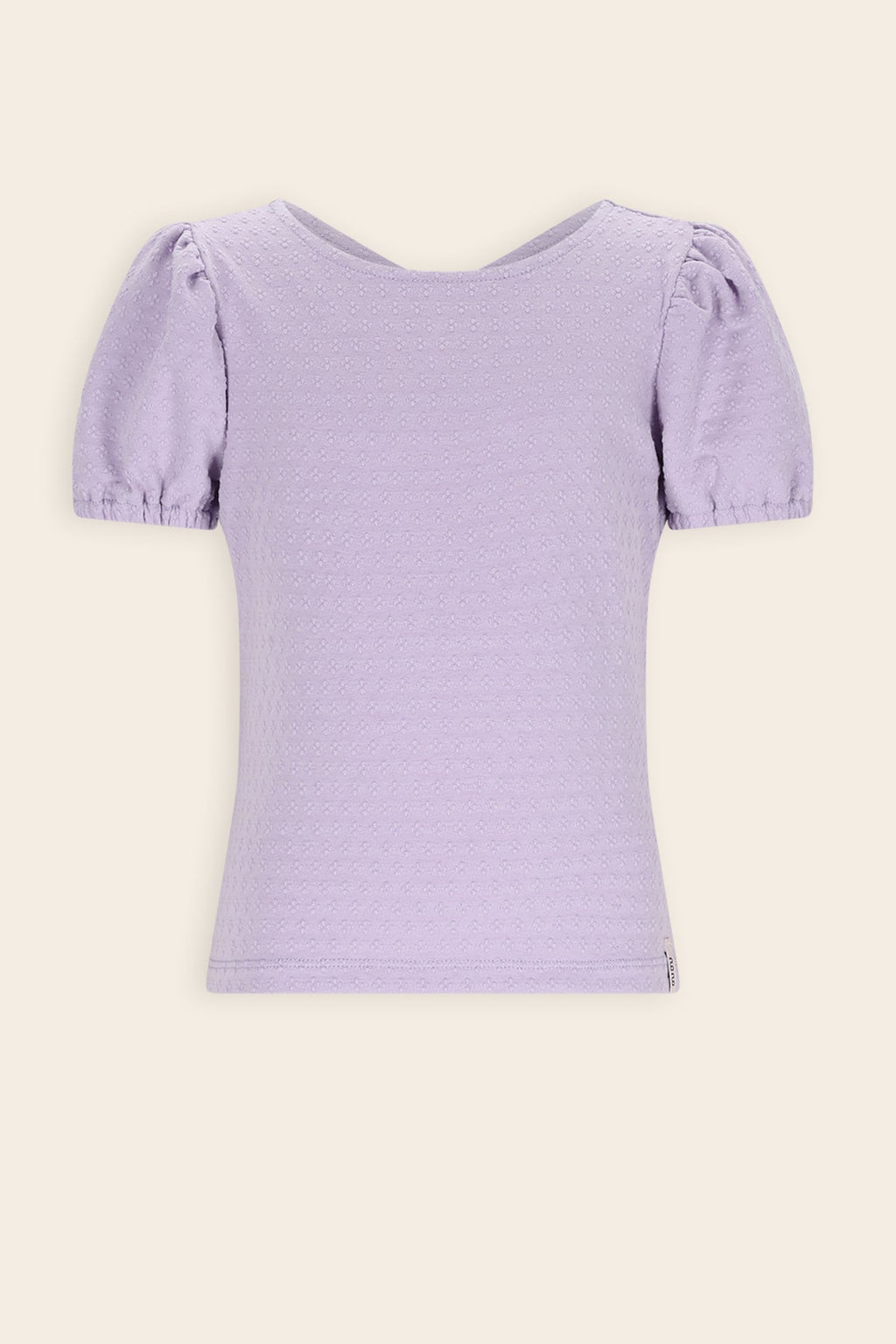 Give your daughter's wardrobe a playful twist with this purple jersey top from NoNo. The top features adorable puff sleeves and a daring open back detail, creating a unique look. Made from a high-quality blend of polyester, cotton, and elastane, this top offers comfort and freedom of movement. Perfect for girls who want to express their creativity and unique identity with colorful and stylish clothing.