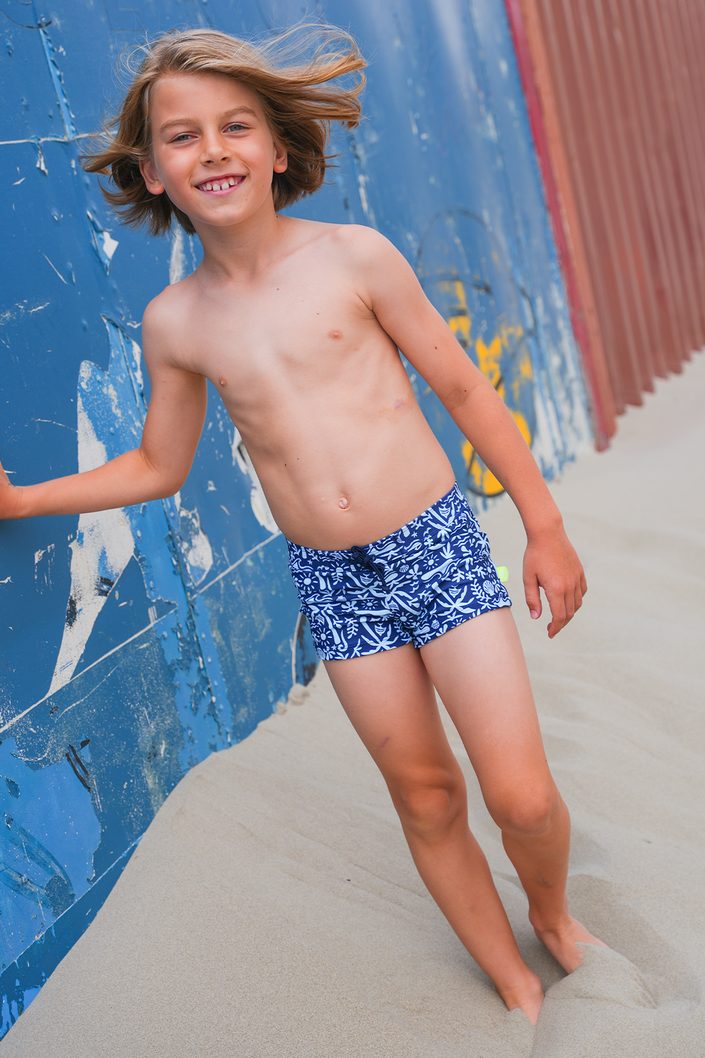 Go for a trendy and cheerful beach look with these swim shorts from Just Beach! These swim shorts are specially designed for boys and feature a striking, dark blue palm print that immediately evokes summer vibes. The swim shorts are practical and comfortable thanks to the adjustable waistband with drawstrings at the front, ensuring a perfect fit every time. The material is high quality and quick-drying, providing extra comfort during all water activities. These swim shorts are a real eye-catcher and easy to combine with other items from the Just Beach collection.