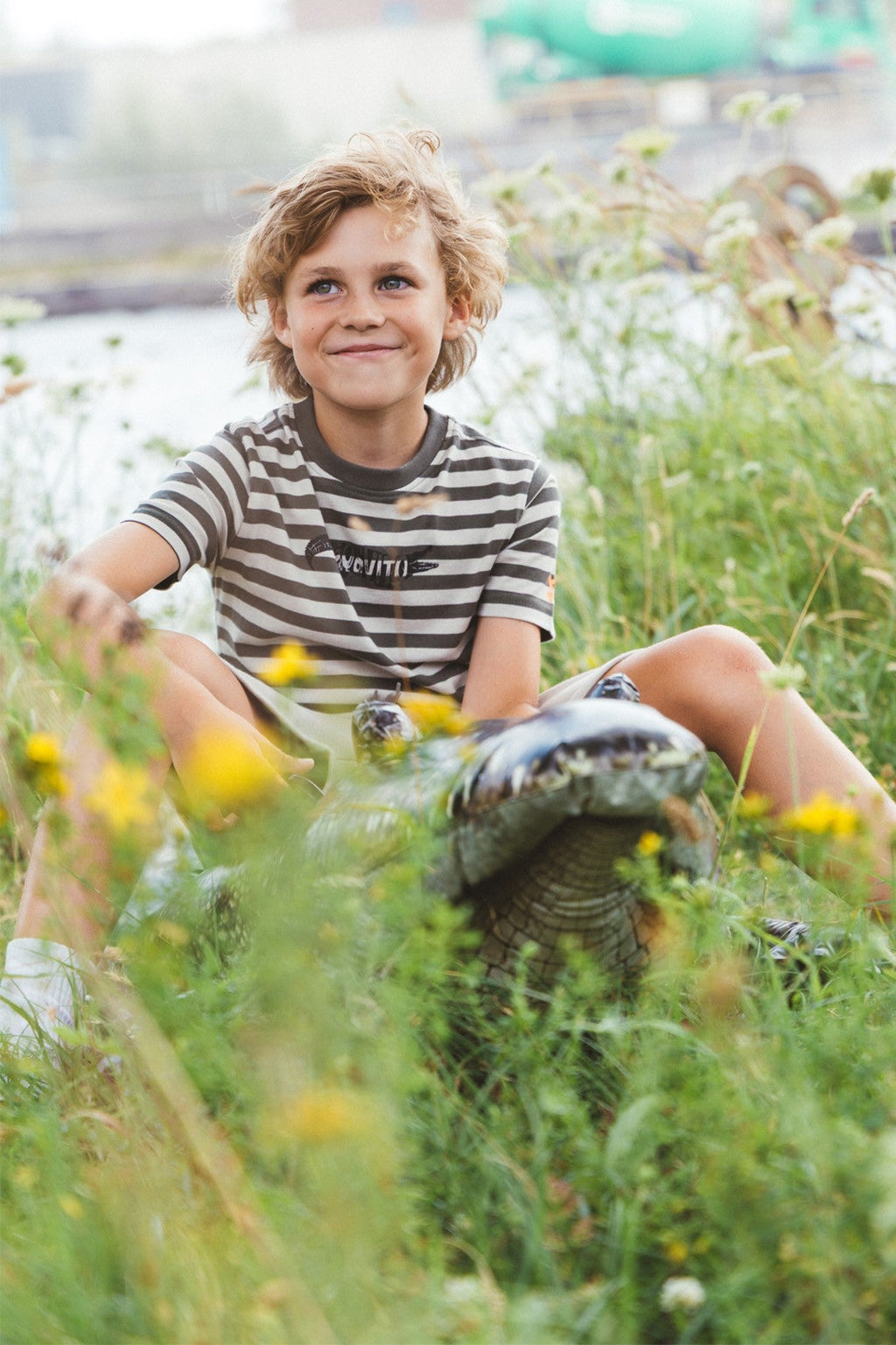 Dit olijfgroene T-shirt van TYGO & vito is een super gave must-have voor elke jongen. Met een stoere print op de voorkant en gemaakt van 100% biologisch katoen, is dit T-shirt perfect voor een relaxte look. Het is een vrolijk item dat zeker een leuke toevoeging is aan de kledingkast van jouw boy. Combineer het met de sweatshort Bruce kit voor een complete outfit.