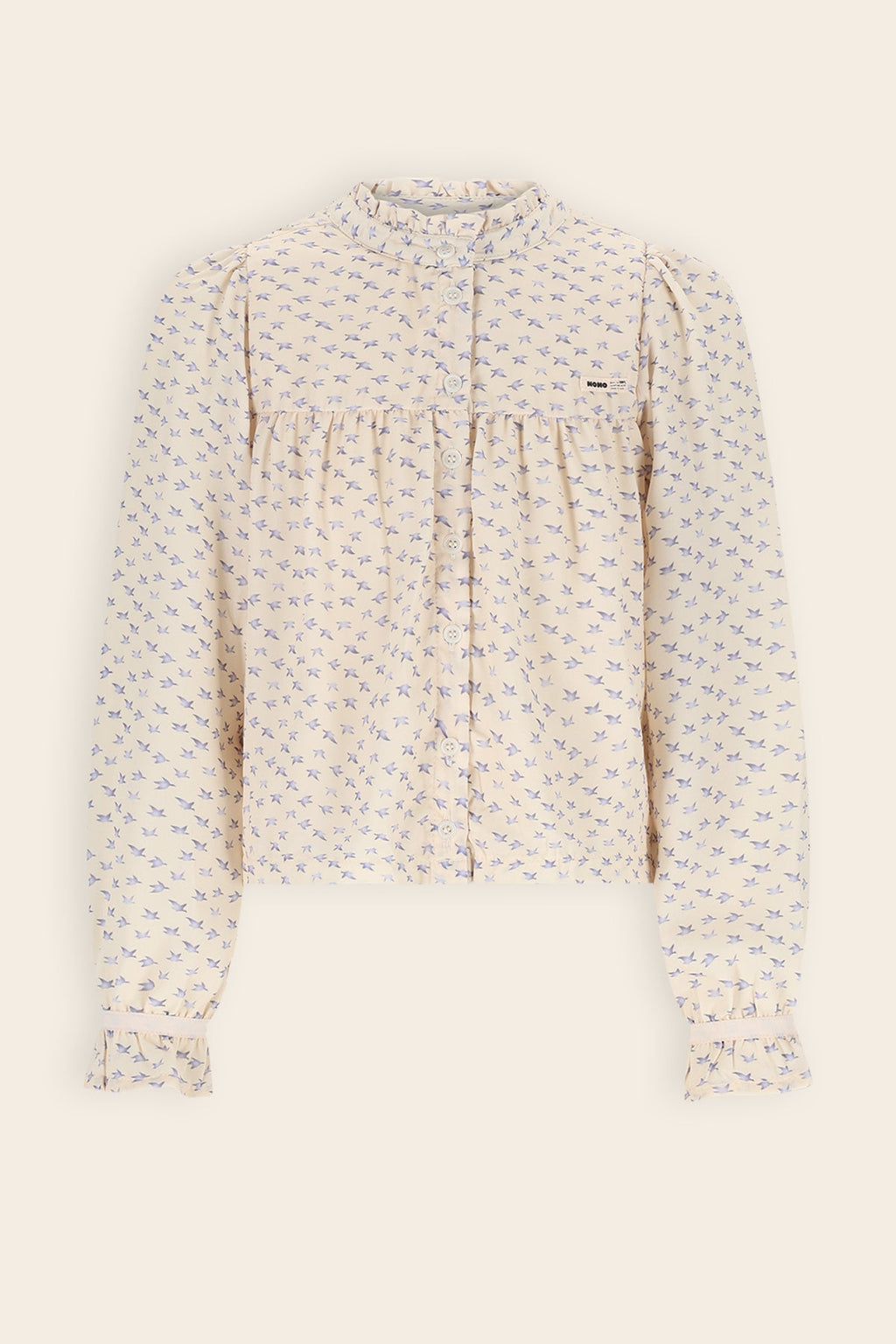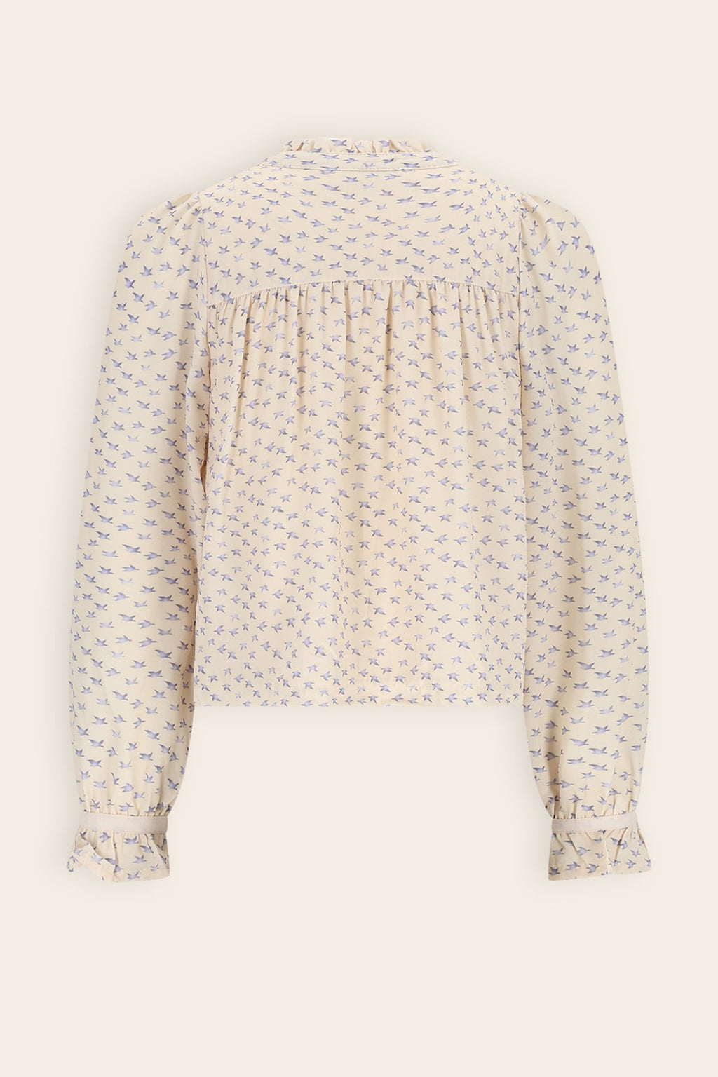 Lange mouw blouse met vogelprint en ruffle bij de kraag. Gemaakt van 60% Gerecycled polyester