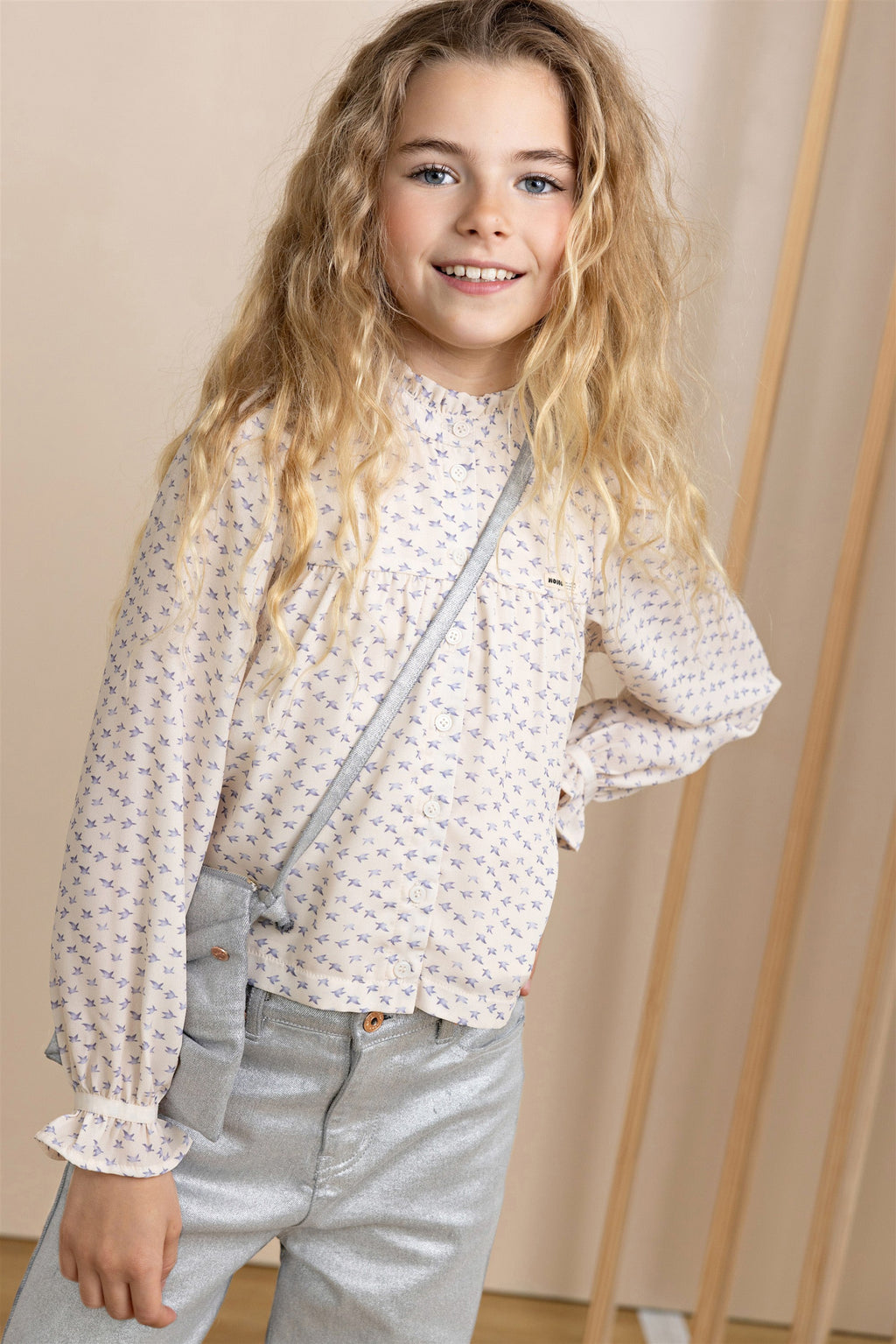 Ontdek de NoNo Tekla Geprinte Blouse, een perfecte keuze voor meiden die houden van creativiteit en stijl. Deze blouse is versierd met een speelse vogelprint en heeft een schattige ruffle bij de kraag. Ideaal voor een vrolijke look en makkelijk te combineren met andere items uit de collectie.