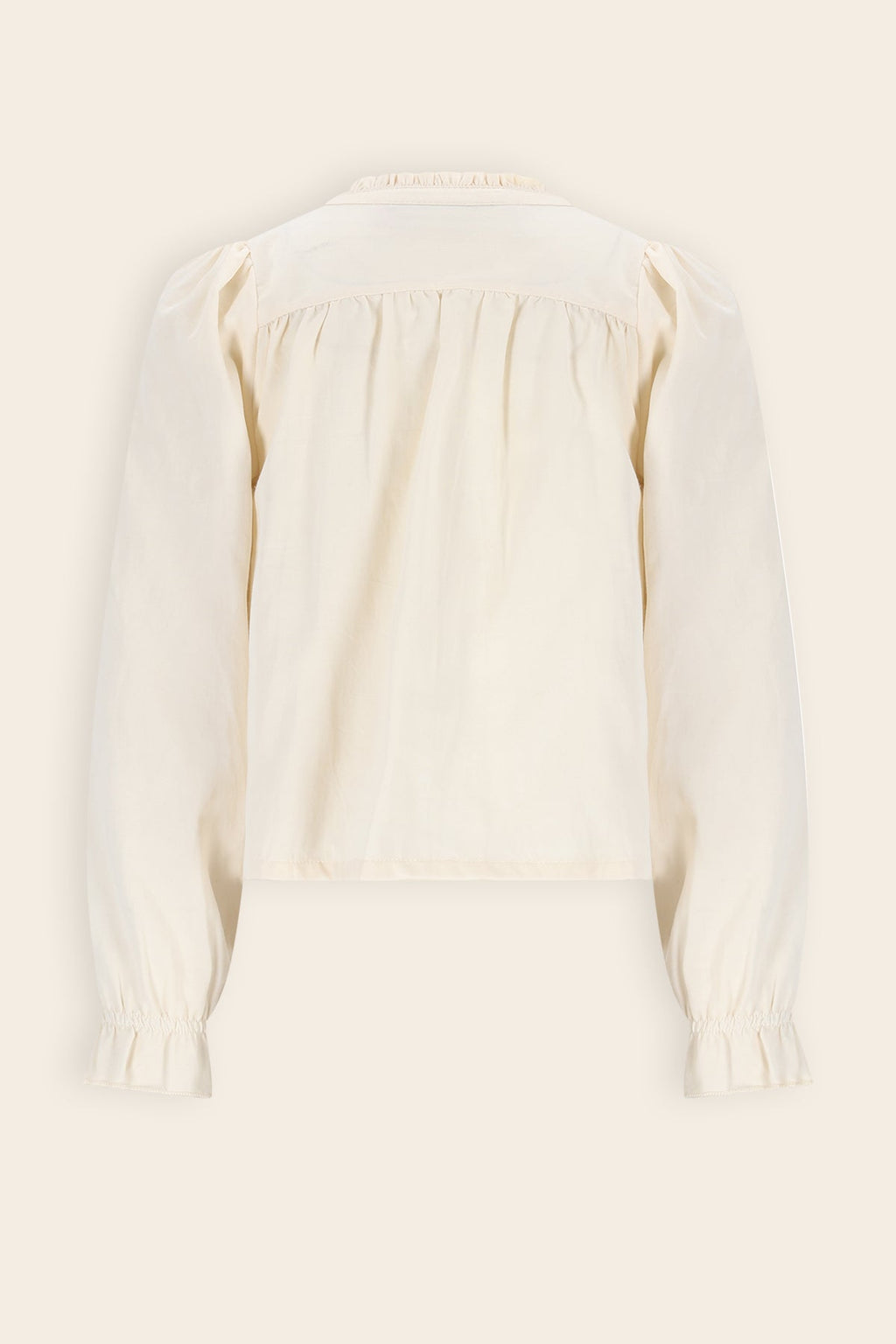 Maak het dagelijks leven van je dochter extra speciaal met de NoNo Trevis geborduurde blouse! Deze blouse is gemaakt van zacht katoen en is perfect voor avontuurlijke meiden. Met zijn vrolijke ivoorkleur en schattige ruffle details, is deze blouse een echte eyecatcher. Combineer hem met de Sayla Sweat Wijde Broek voor een speelse en stijlvolle outfit.• Comfortabel en ademend katoen voor elke gelegenheid