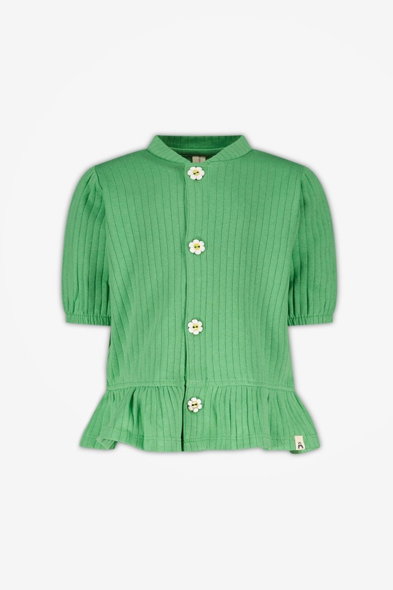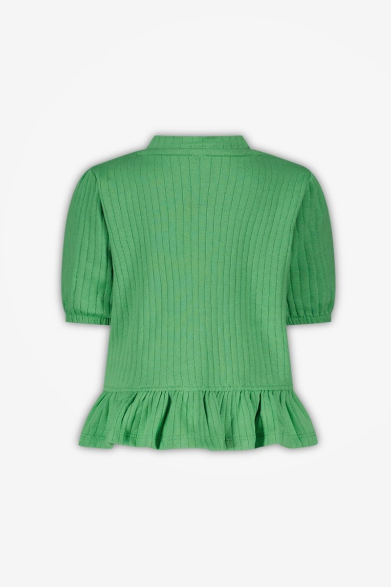 Deze schattige blouse is gemaakt van een zachte ribstof in een mooie groene kleur. Het heeft lange pofmouwtjes en een uitlopende onderkant die zorgt voor een speels effect. De hartvormige knoopsluiting aan de voorkant geeft het een extra lieve uitstraling! Duurzaam gemaakt. Dit chapter is in samenwerking met @kikirigters.