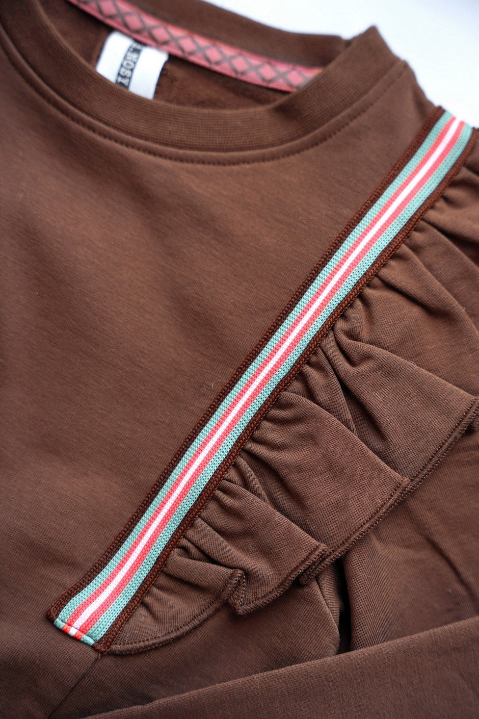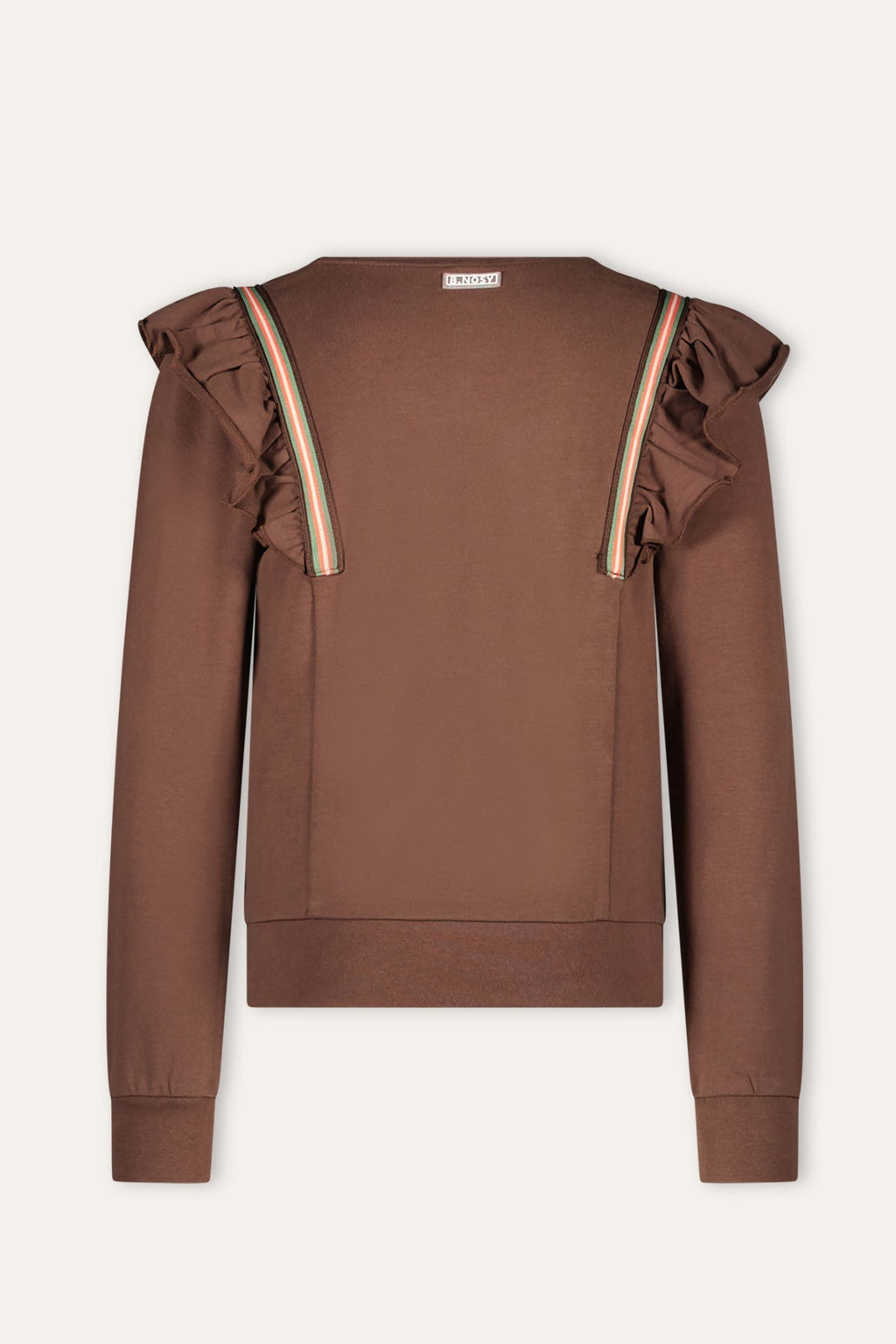Comfy & Cool! De Babet trui is super stoer en zit ook nog super lekker! De trui heeft mooie ruffle details. De trui is beschikbaar in een mooie bruine donkerkleur en een toffe mintkleur!