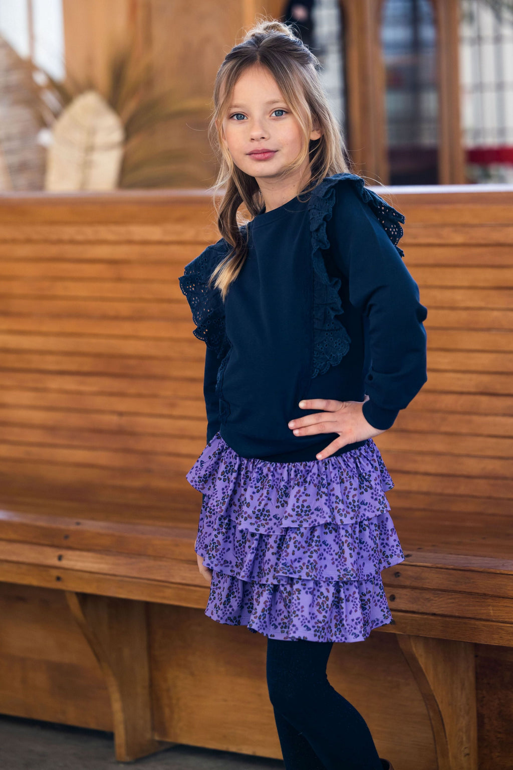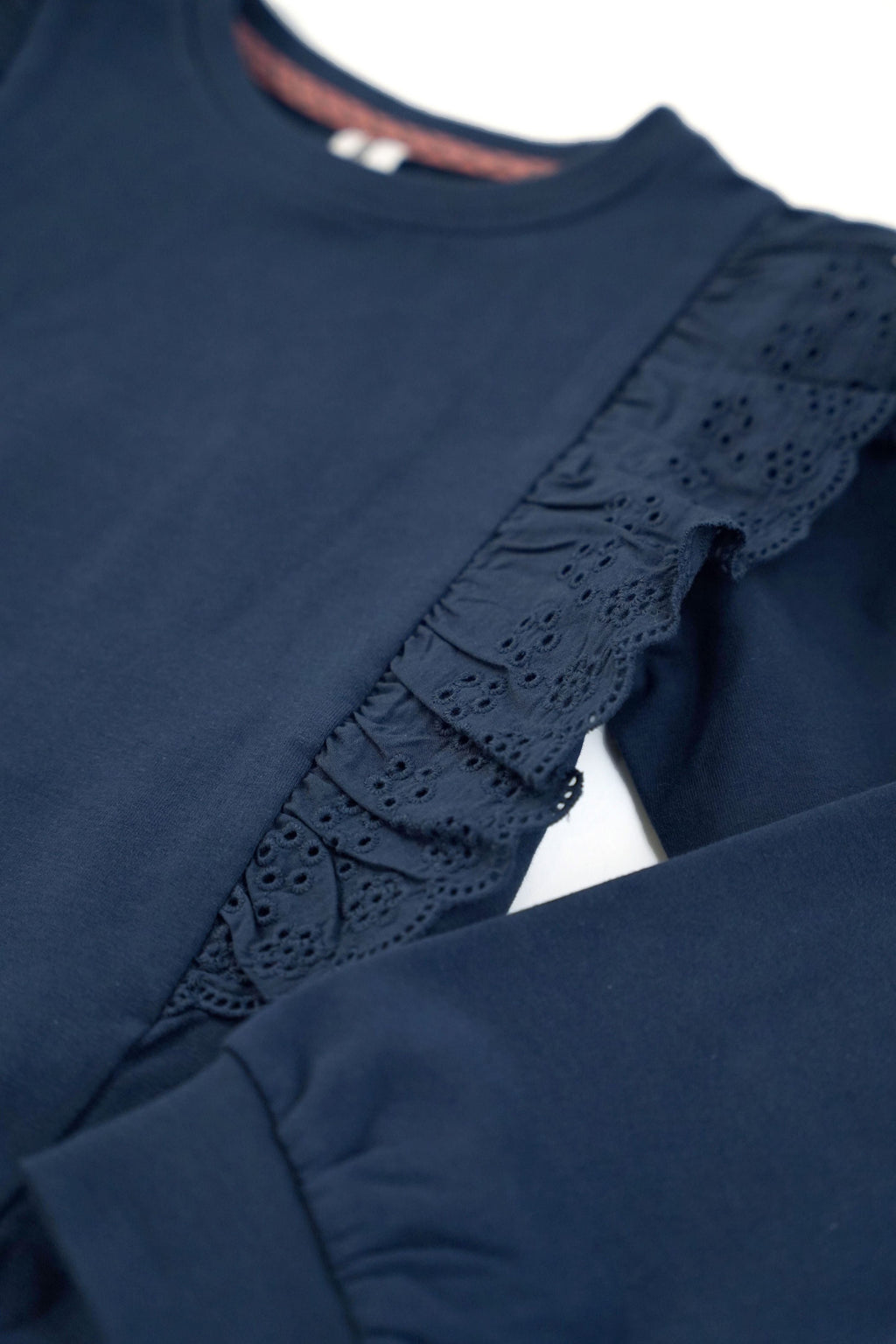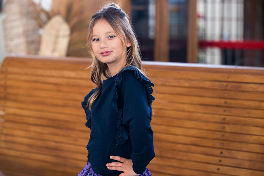 Trui Daantje is echt een favorietje! Deze schattige trui heeft een mooi donkerblauwe kleur. De ruffles op de trui maken hem extra leuk! De trui is lekker zacht en draagt heel fijn!