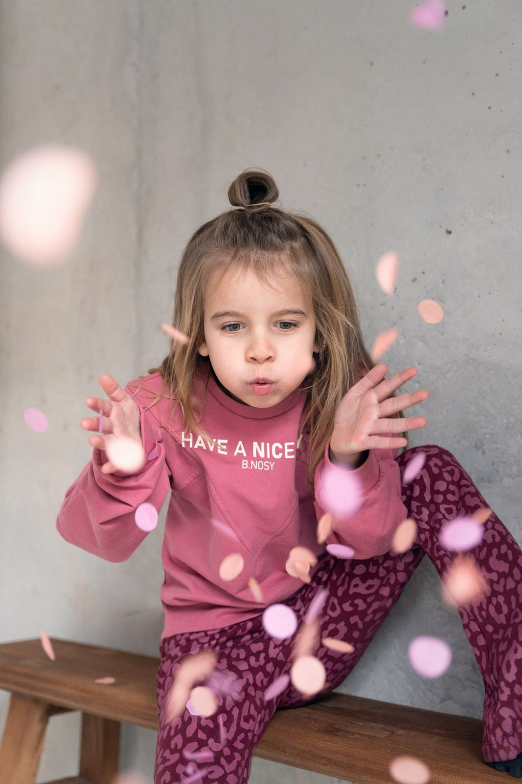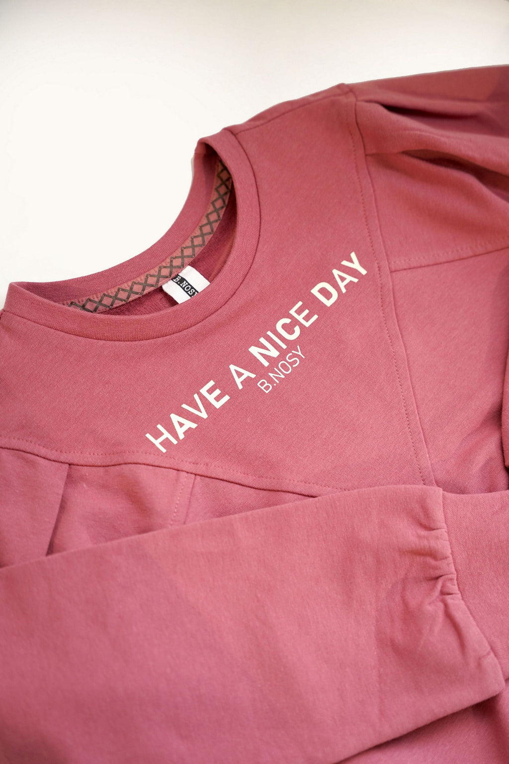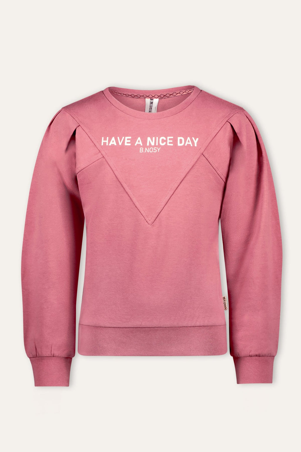 Trui Danna is zo leuk! De trui heeft mooie oud roze kleur met een leuke ecru geprinte tekst op de borst. De trui heeft een super mooie pasvorm waarbij gebruik is gemaakt van een V-detail. Dit maakt de trui super uniek. De ribafwerking aan de trui maakt hem helemaal af!