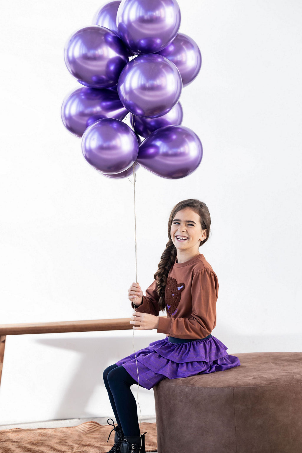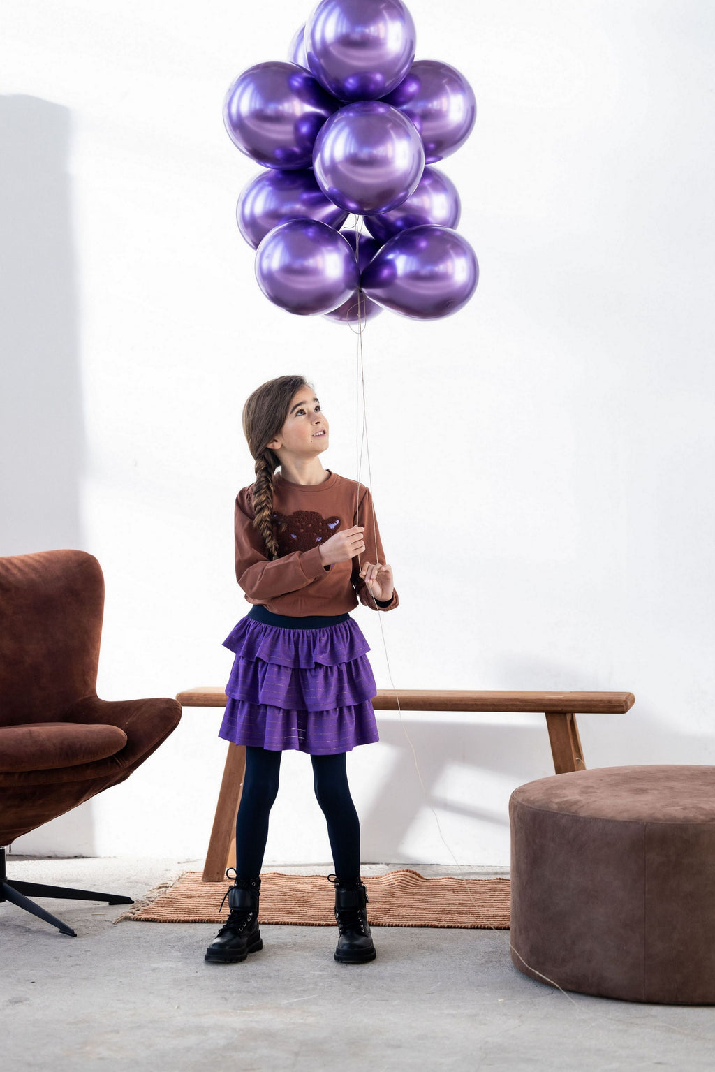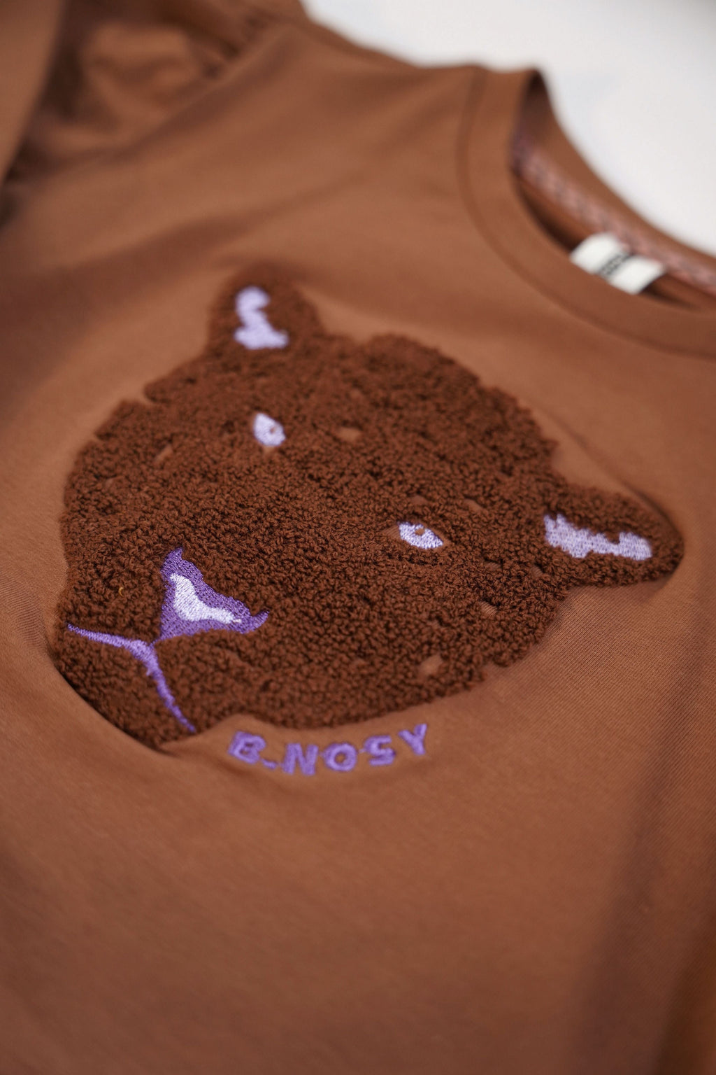 Met sweater Dina zit je er lekker warm bij deze winter! De trui heeft een mooie warme cappuccino kleur en is gemaakt van een zacht CMIA-katoen. De trui heeft een donker bruin met paars artwork op de borst.